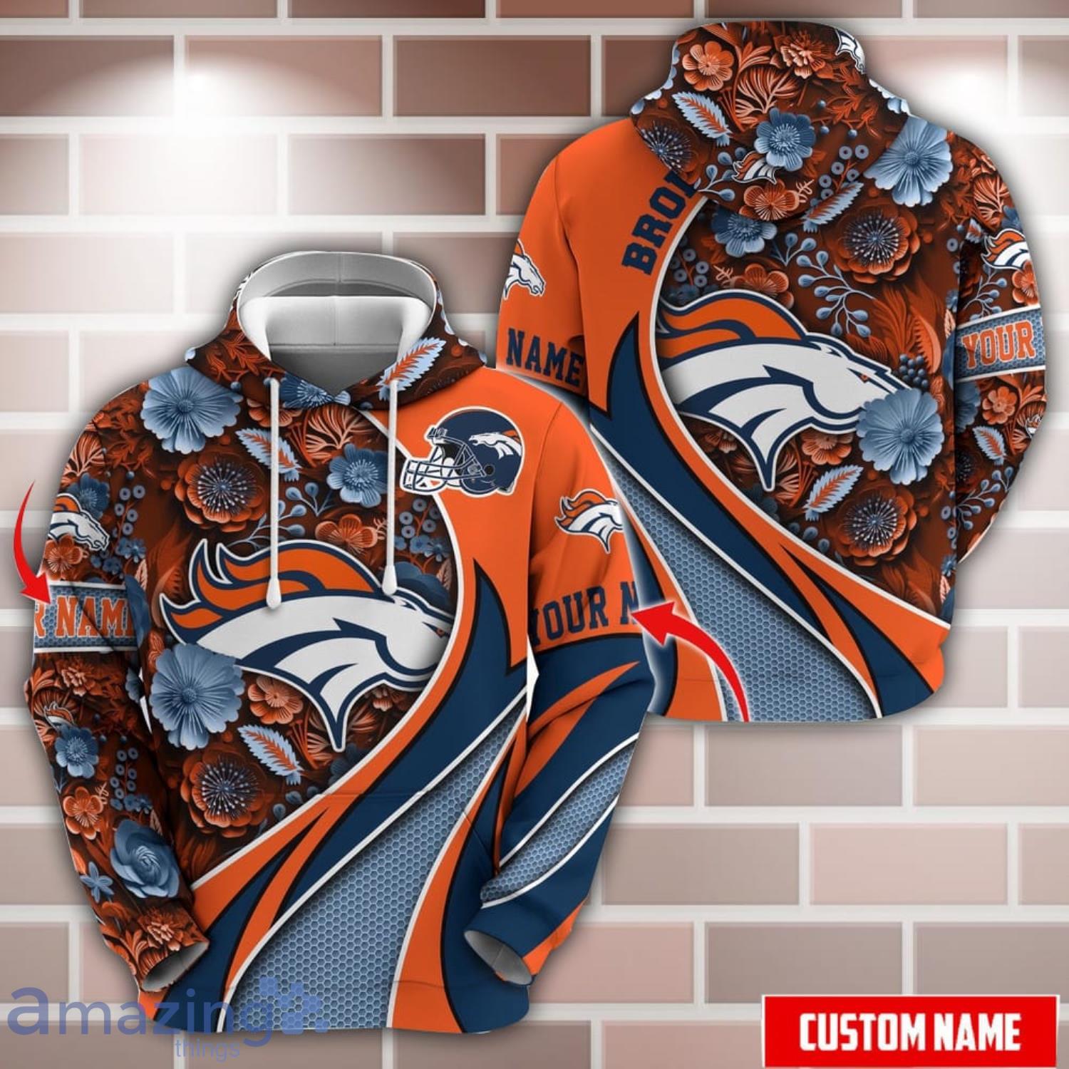 Some of the Personalized Name NFL Denver Broncos Flower Pattern 3D Hoodie photos