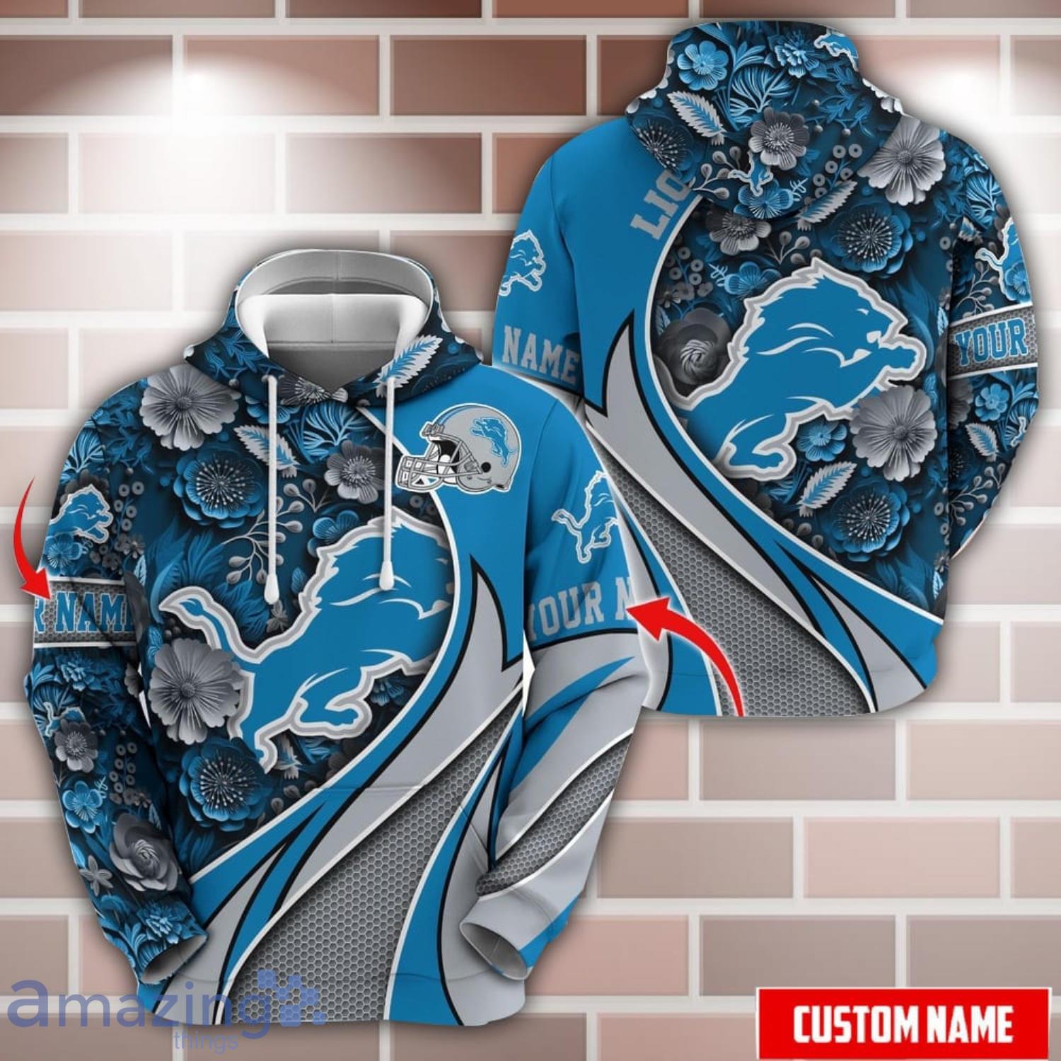 Some of the Personalized Name NFL Detroit Lions Flower Pattern 3D Hoodie photos