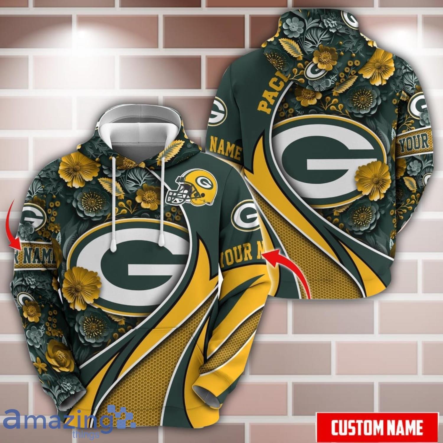 Some of the Personalized Name NFL Green Bay Packers Flower Pattern 3D Hoodie photos