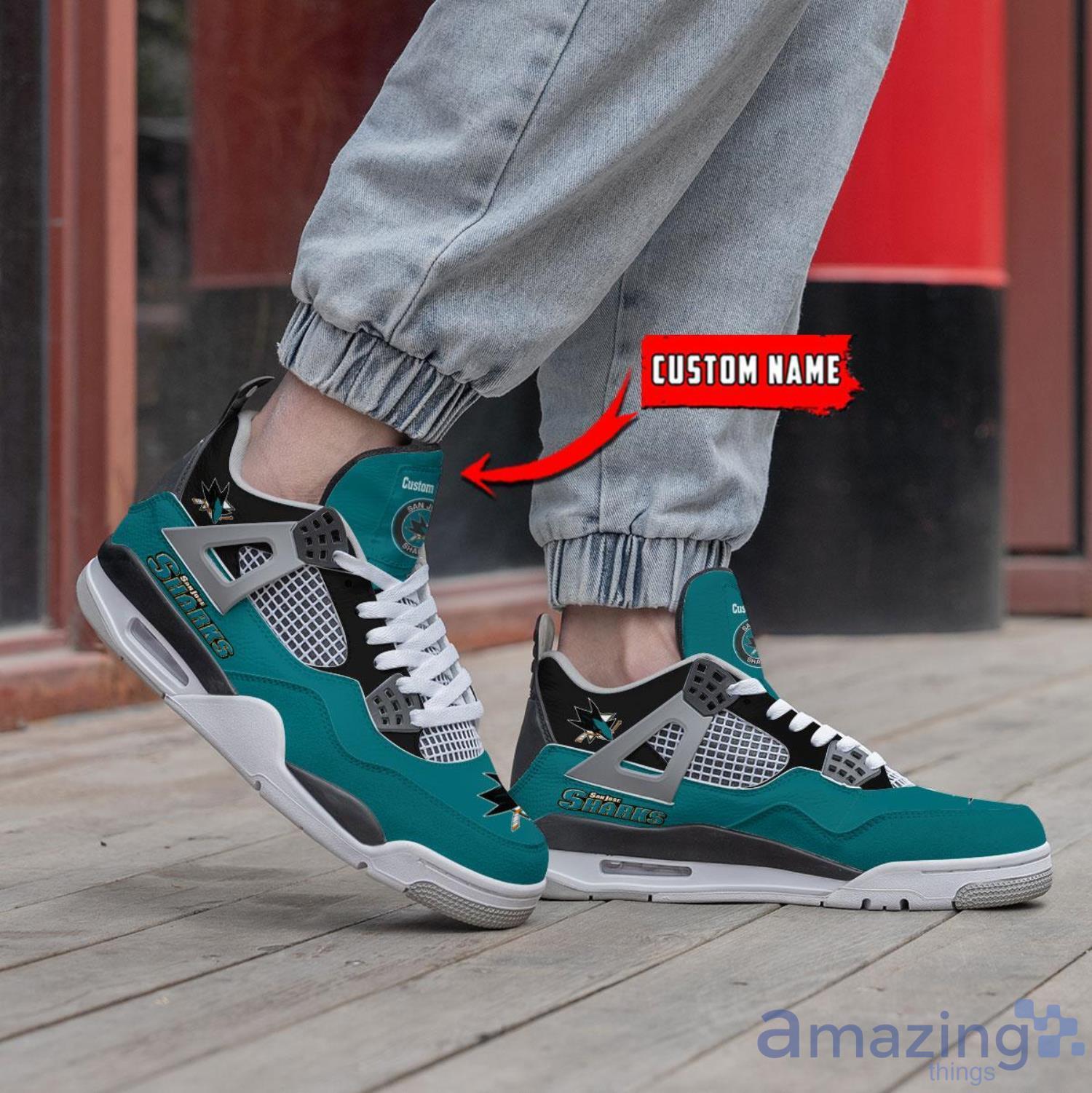 Step up your style game with our Personalized Name San Jose Sharks Air Jordan 4 Shoes! Designed for both men and women, these sneakers are the perfect way to show off your love for the San Jose Sharks and Air Jordan.