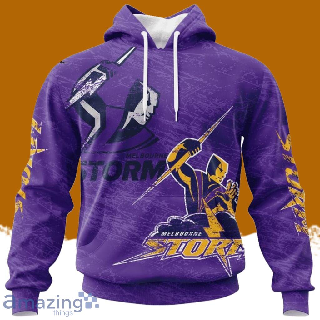 Some of the Personalized Nrl Melbourne Storm Special Retro Logo Design Hoodie 3D All Over Print Vintage For Big Fans photos