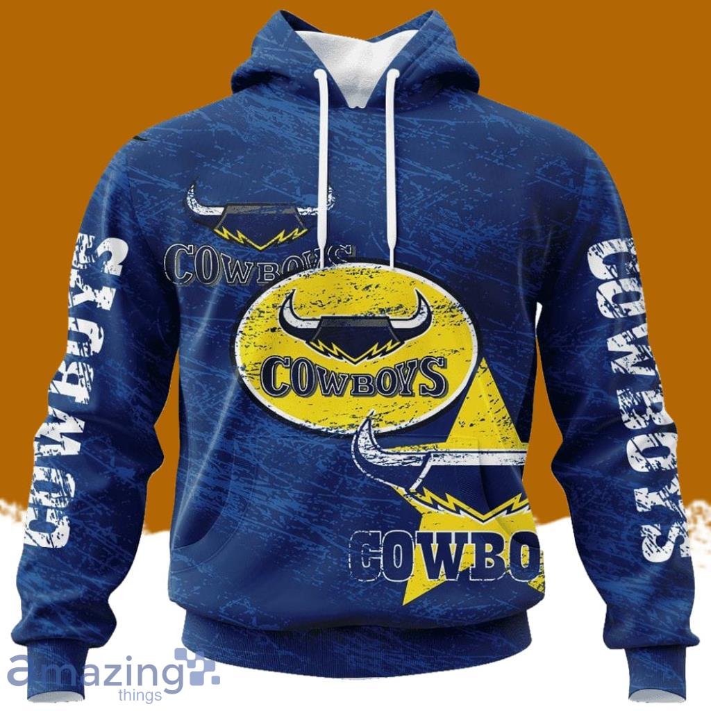Some of the Personalized Nrl North Queensland Cowboys Special Retro Logo Design Hoodie 3D All Over Print Vintage For Big Fans photos