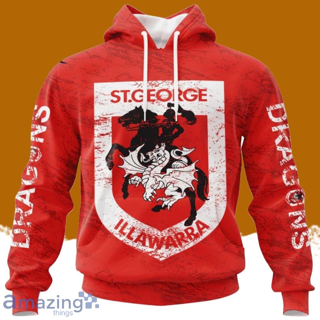 Some of the Personalized Nrl St. George Illawarra Dragons Special Retro Logo Design Hoodie 3D All Over Print Vintage For Big Fans photos
