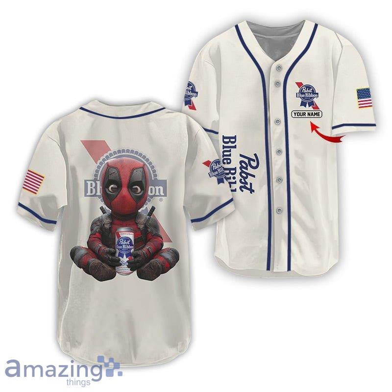 Some of the Personalized Pabst Blue Ribbon Time with Deadpool Sleeved Button Jersey Gift Fans photos