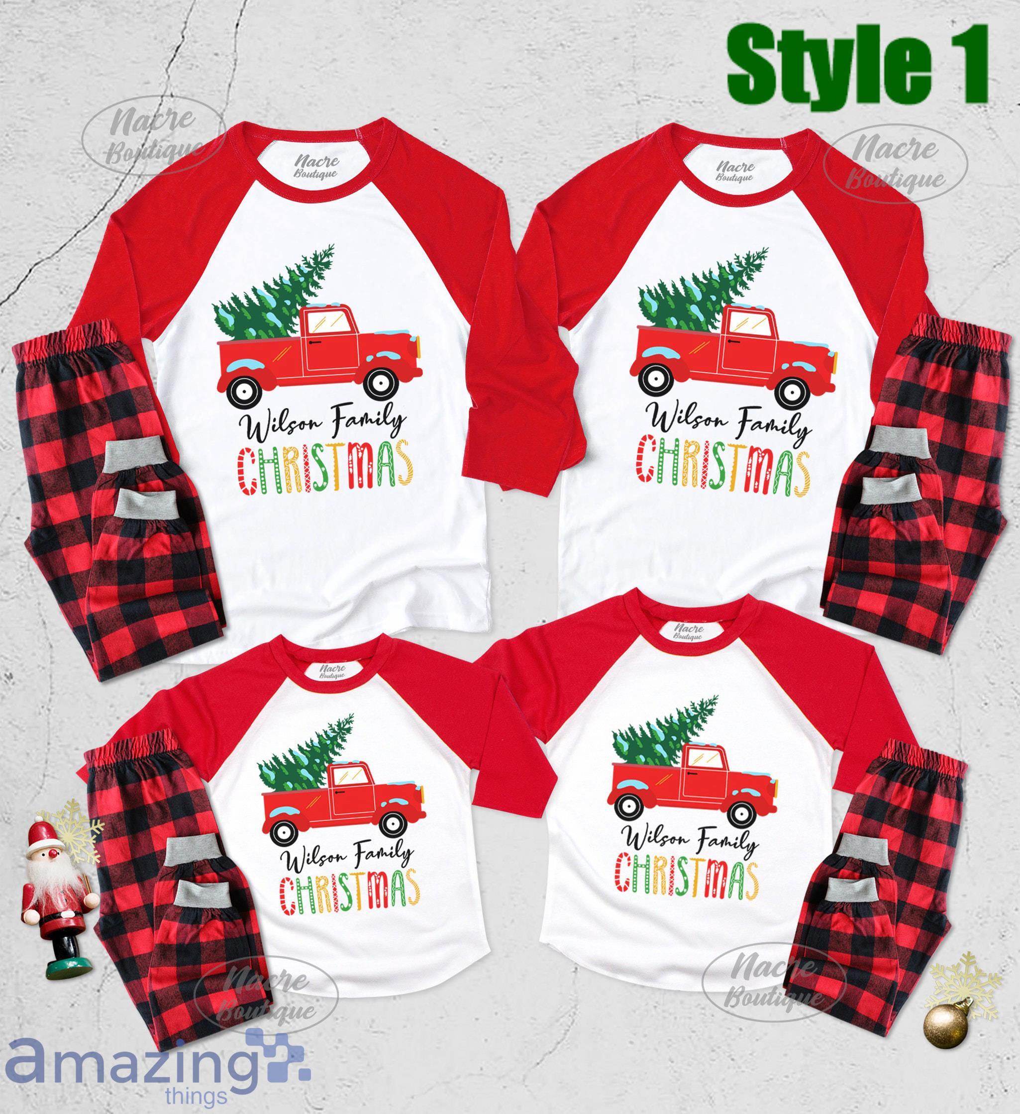 Some of the Personalized Red Truck And Christmas Tree Christmas Matching Family Pajamas photos