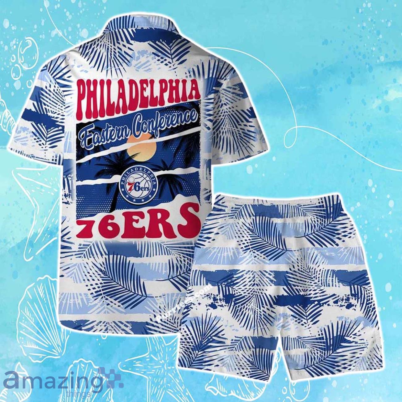 Philadelphia 76ers Team Logo Pattern Leaves Tropical Hawaiian Shirt & Short Details: