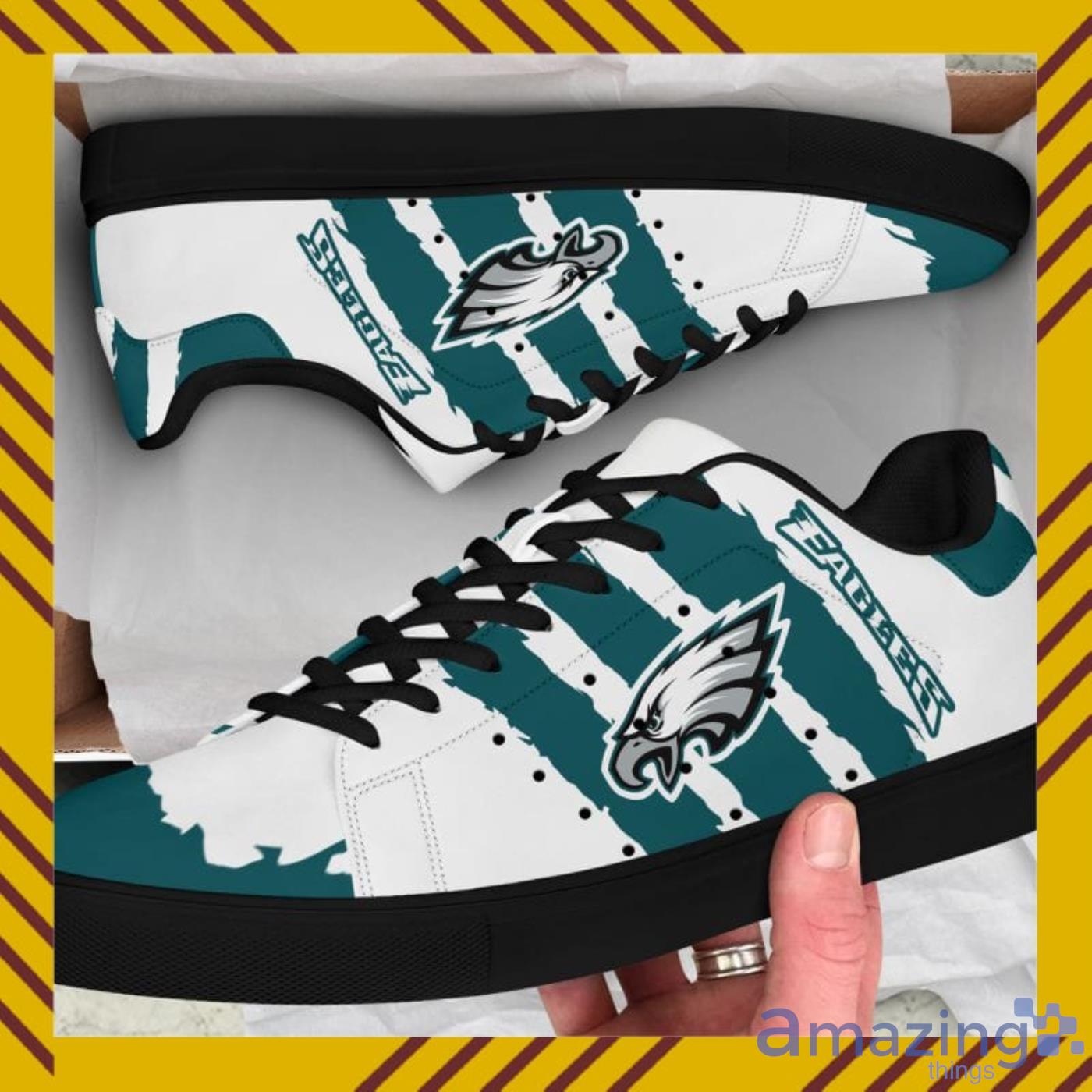 Looking for a versatile and stylish low top skate shoes? Look no further than the Philadelphia Eagles NFL Black And White Skate Shoes. This pair is perfect for anyone who wants to look sharp while skating. The black and white design is perfect for any sports or entertainment event. Plus, the shoes are made with a durable construction that will make sure that you can take them anywhere you want to go.