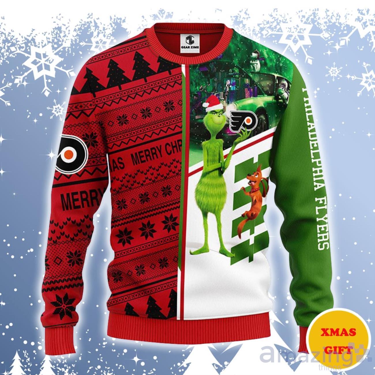 Don’t miss out on this unique and festive Philadelphia Flyers Grinch & Scooby-Doo Ugly Sweater. Grab yours now and be the talk of the town this Christmas season!
