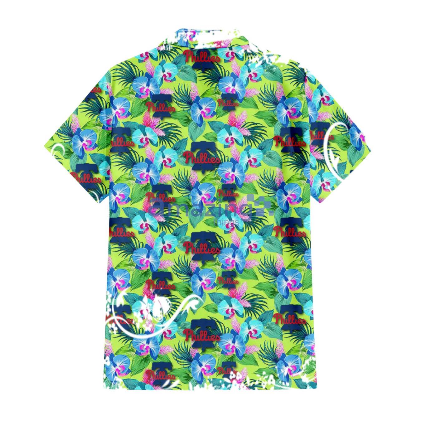 Some of the Philadelphia Phillies Blue Orchid Green Pink Leaf Green Background 3D Hawaiian Shirt Gift For Fans photos
