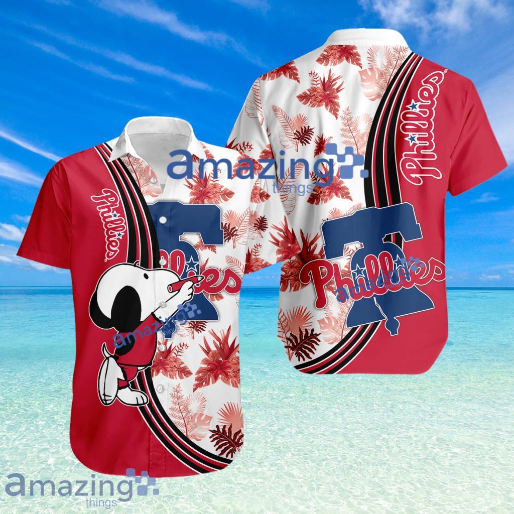 Philadelphia Phillies Logo Snoopy Pattern Tropical Button Down Hawaiian Shirt Details: