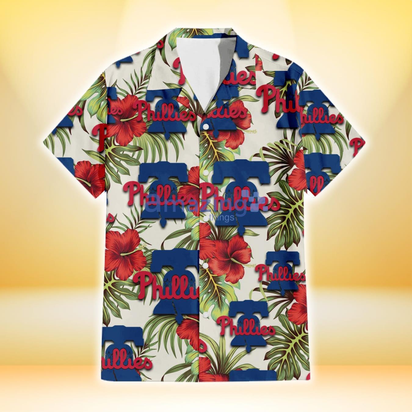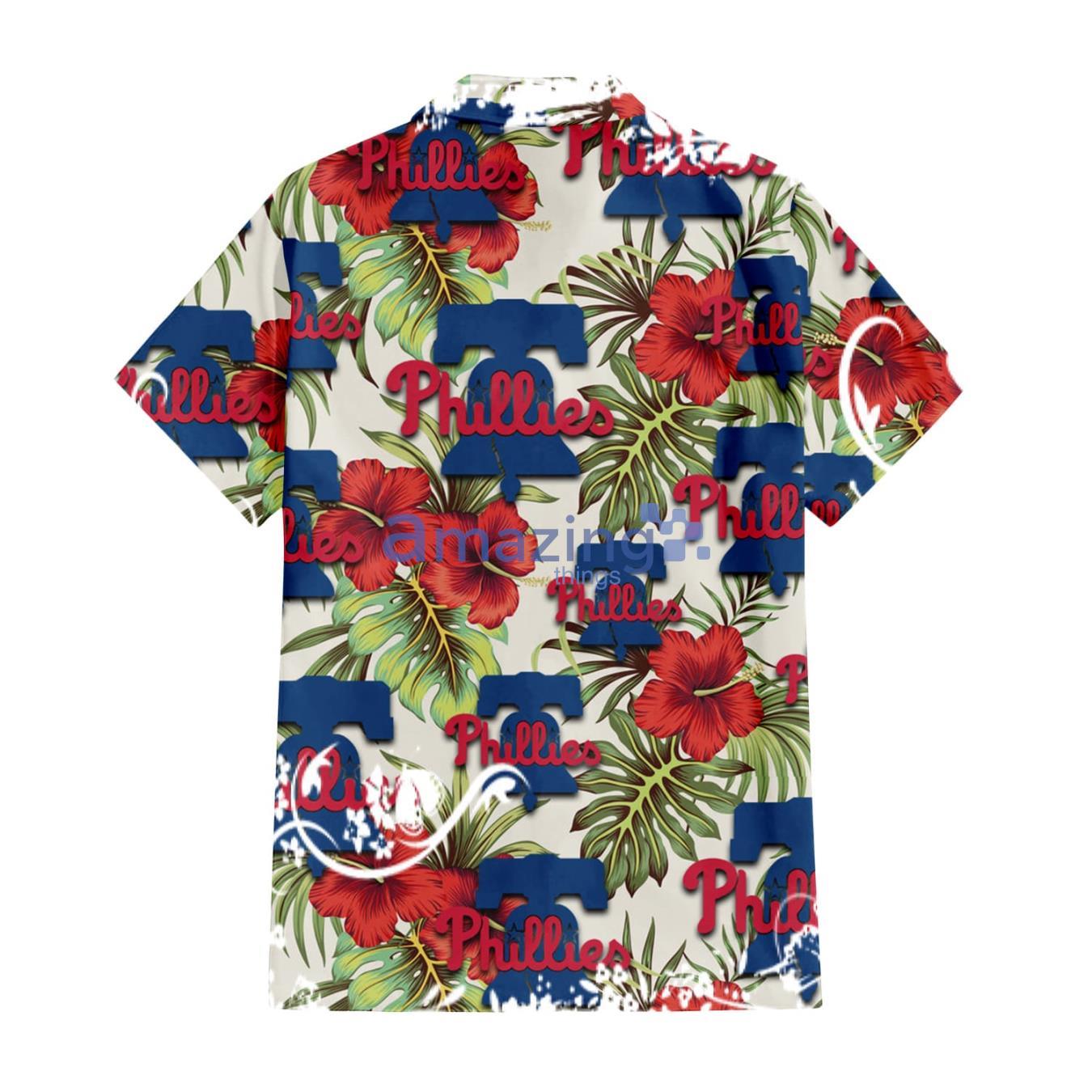 Some of the Philadelphia Phillies Red Hibiscus Green Tropical Leaf Cream Background 3D Hawaiian Shirt Gift For Fans photos