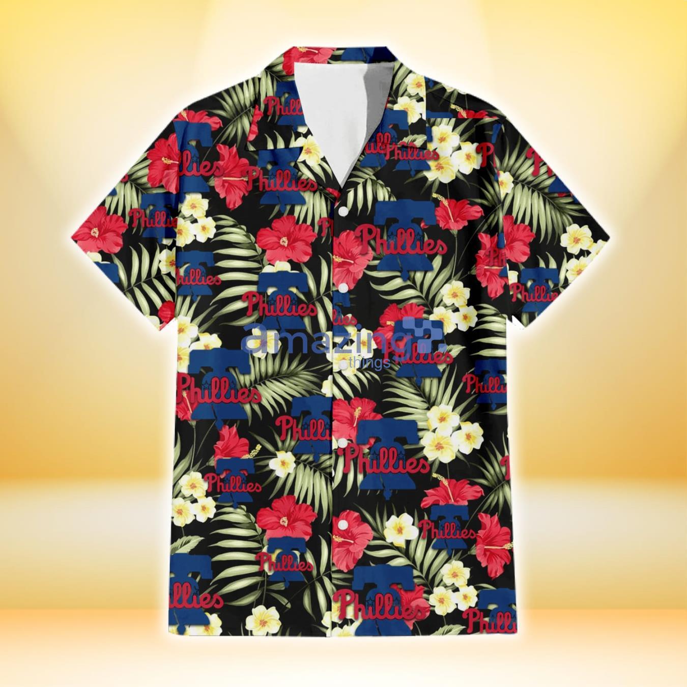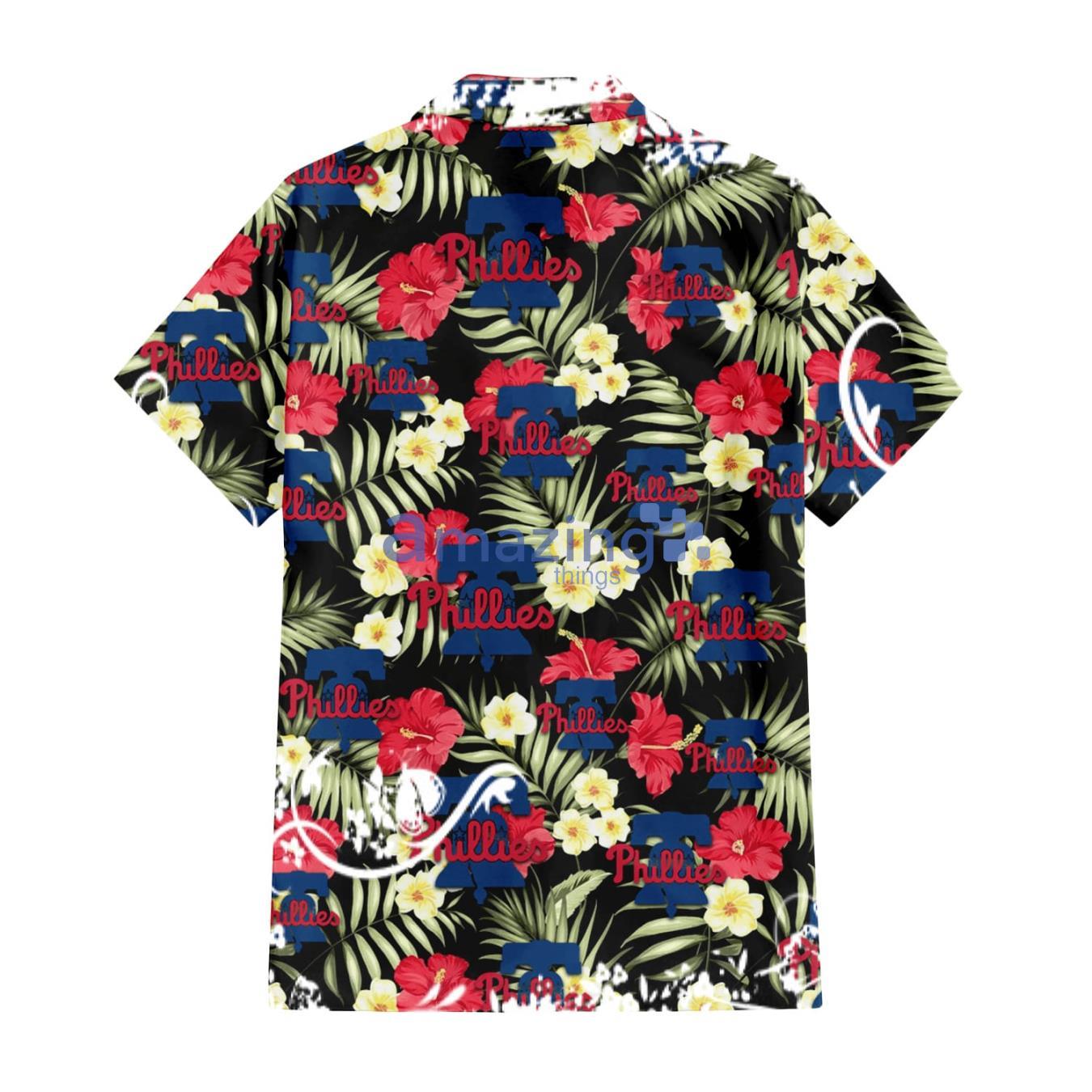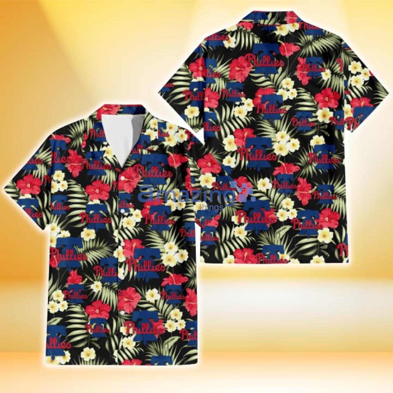 Some of the Philadelphia Phillies Red Hibiscus Yellow Porcelain Flower Black Background 3D Hawaiian Shirt Gift For Fans photos