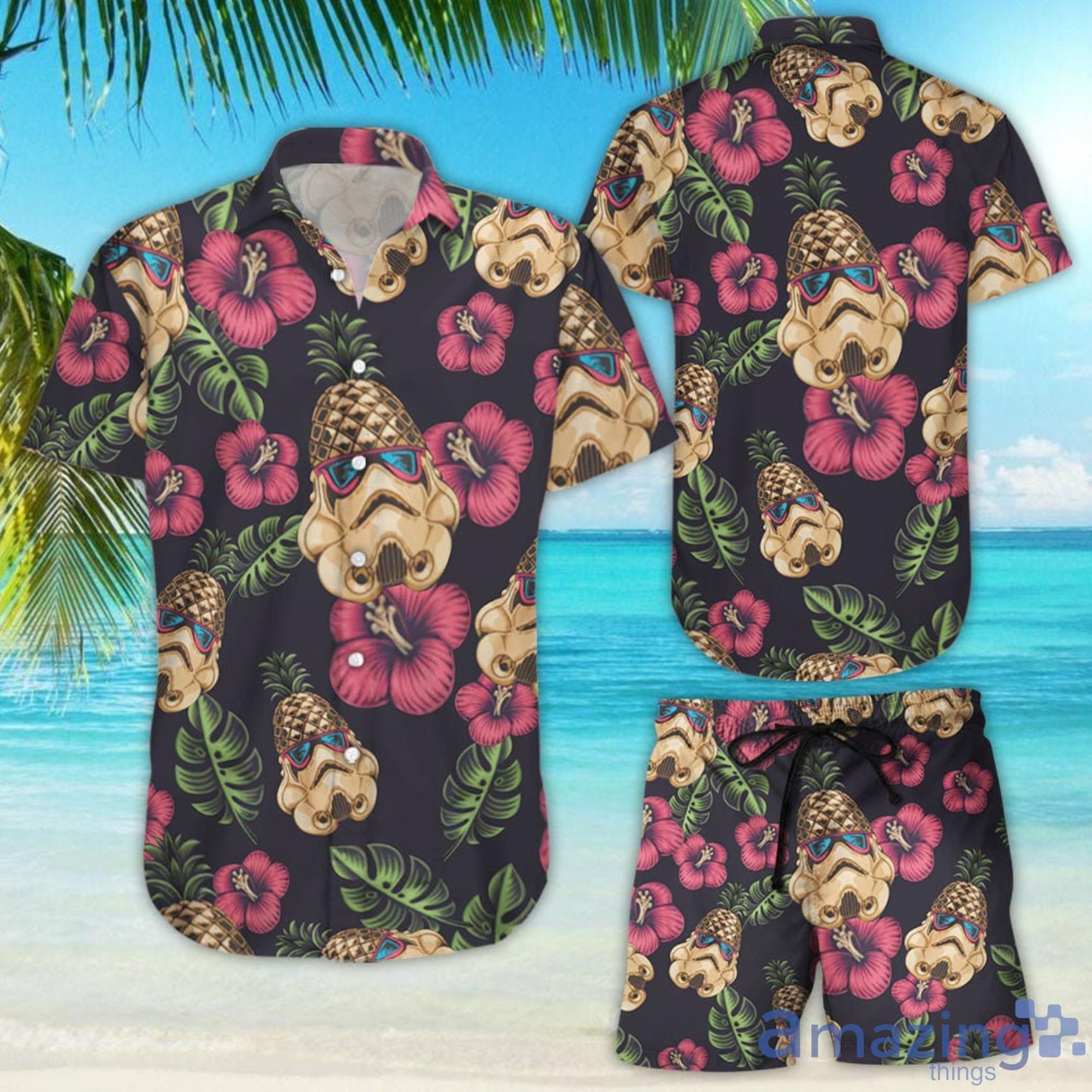 This design is available in a combo Hawaiian shirt & shorts. You can also get it separate. The default option is only one shirt or one pair of shorts. You have chosen a combo to get them both. This combo Pineapple Trooper Summer Short Sleeve Hawaiian Shirt And Short is perfect to go to the beach. Get yours now or make a great gift.
