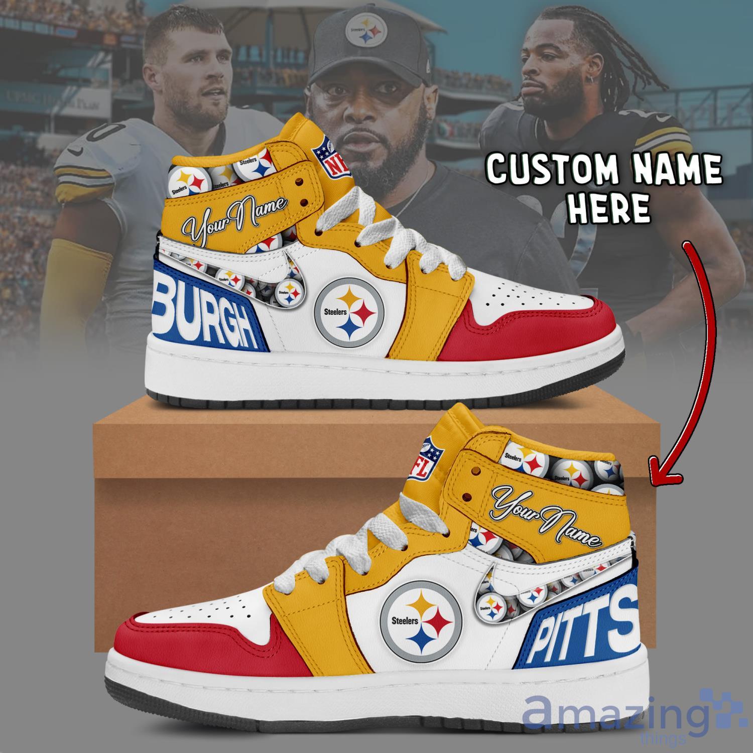 Whether you’re headed to Heinz Field or simply strolling around town, these shoes are bound to turn heads and spark conversations among fellow fans. Let your feet do the talking and make a bold statement with the Pittsburgh Steelers Air Jordan Hightop Shoes. Don’t miss out on this exclusive opportunity to own a piece of Steelers history – order yours now and step up your game day style!
