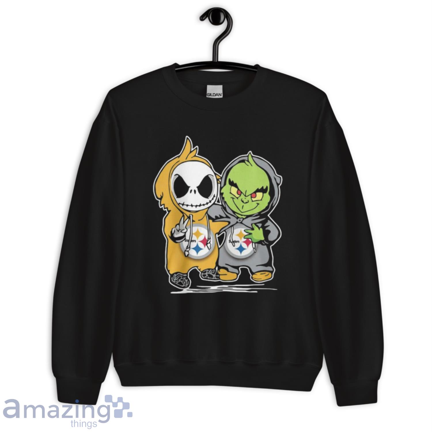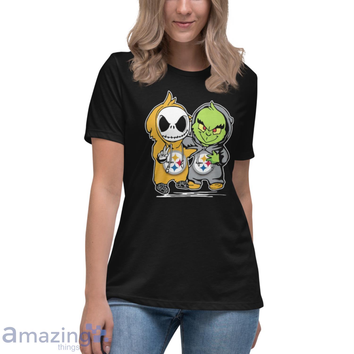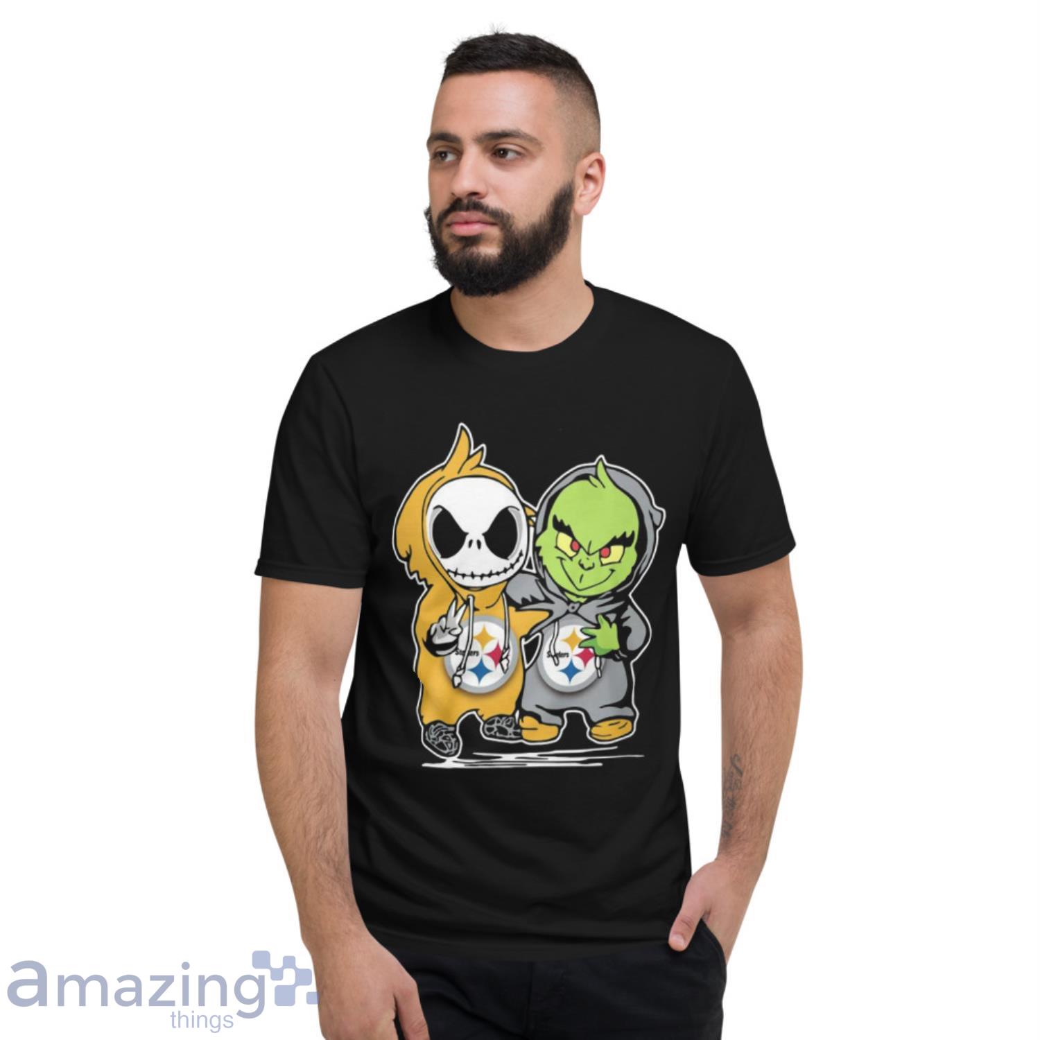 Looking for a unique and adorable holiday shirt for your little one? Look no further than this Pittsburgh Steelers Baby Jack Skellington And Baby Grinch Shirt! This shirt features two of the most popular characters from holiday movies, Jack Skellington from The Nightmare Before Christmas and The Grinch from How the Grinch Stole Christmas. Your little one will look absolutely adorable in this shirt and will be sure to stand out from the crowd!