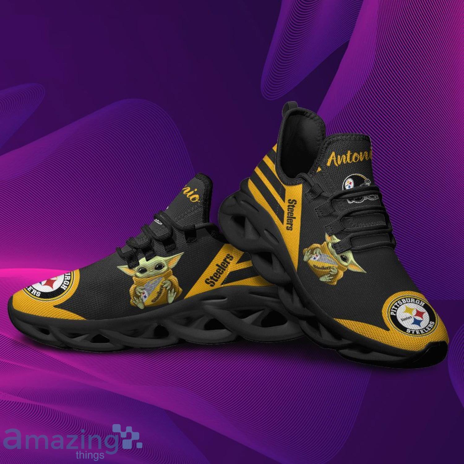 Welcome to our Pittsburgh Steelers Baby Yoda Hug Custom Name Max Soul Shoes Sneakers Running For Fans product page!