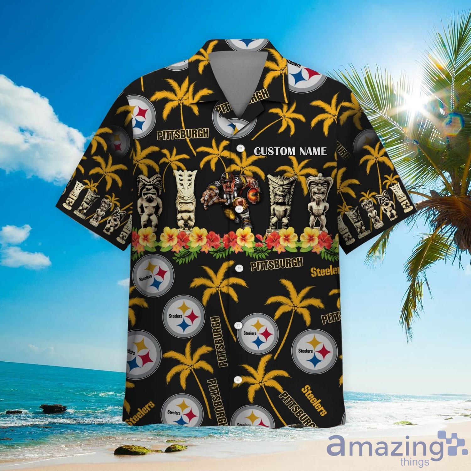 Pittsburgh Steelers Custom Name Hawaiian Shirt Details: