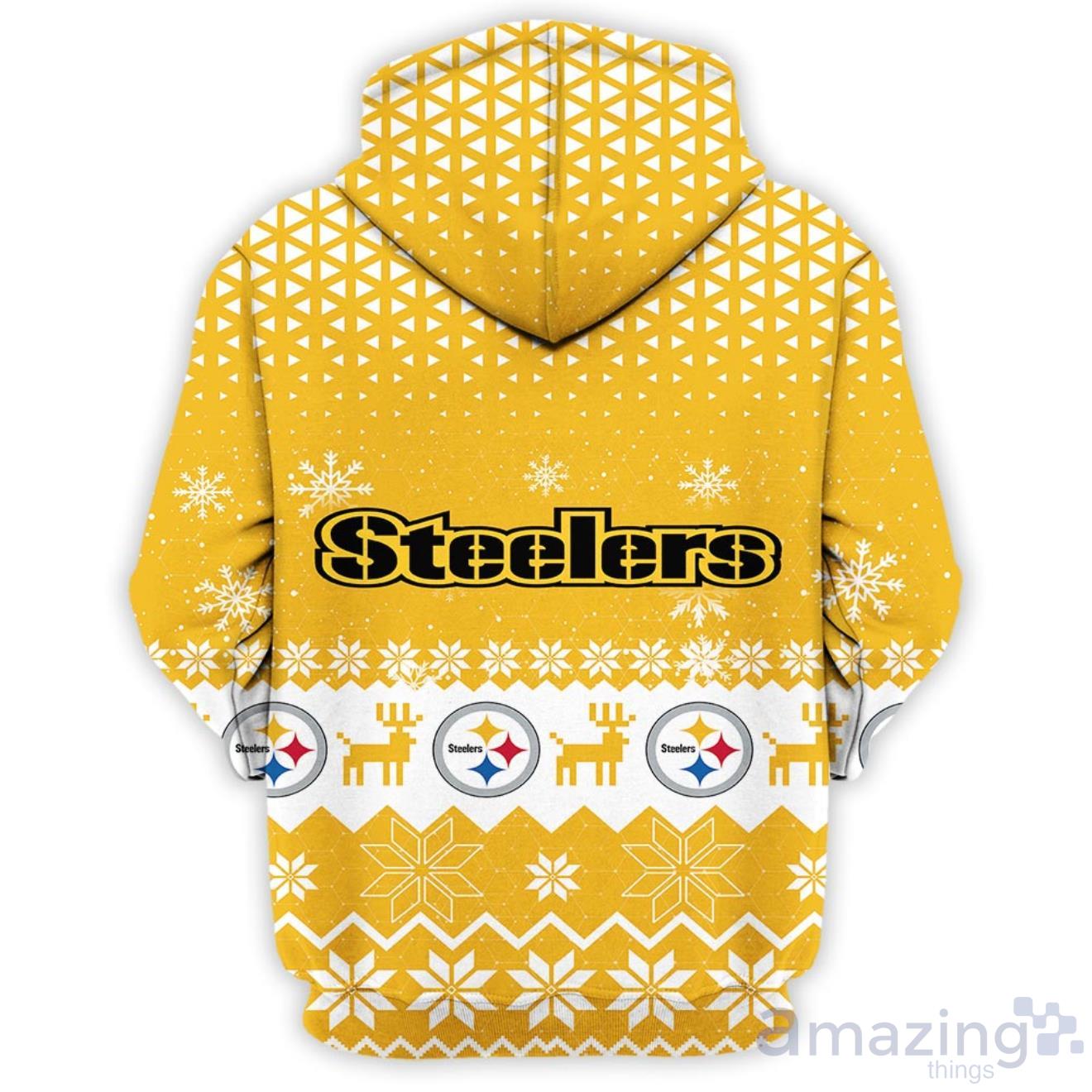 Whether you’re attending a Christmas party, watching the game with friends, or simply lounging around the house, the Pittsburgh Steelers Sports 3D Hoodie Christmas Sweater is a must-have for any true fan. Show off your team spirit and celebrate the holiday season in style with this one-of-a-kind sweater. Don’t miss out on the opportunity to own this festive and fashionable piece. Order yours today and make this holiday season one to remember!