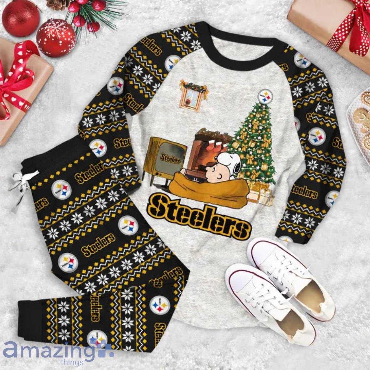 Crafted with utmost care and attention to detail, this limited edition set features the iconic Pittsburgh Steelers logo and colors, making it the perfect attire to show off your team pride during the merriest time of the year. The soft and cozy fabric ensures maximum comfort, allowing you to relax and enjoy the holiday season in ultimate bliss.