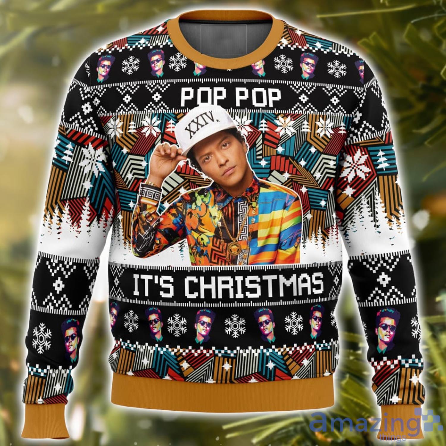 Some of the Pop Pop It’s Christmas Bruno Mars AOP Ugly Christmas Sweater Christmas Holiday Gift For Men And Women photos