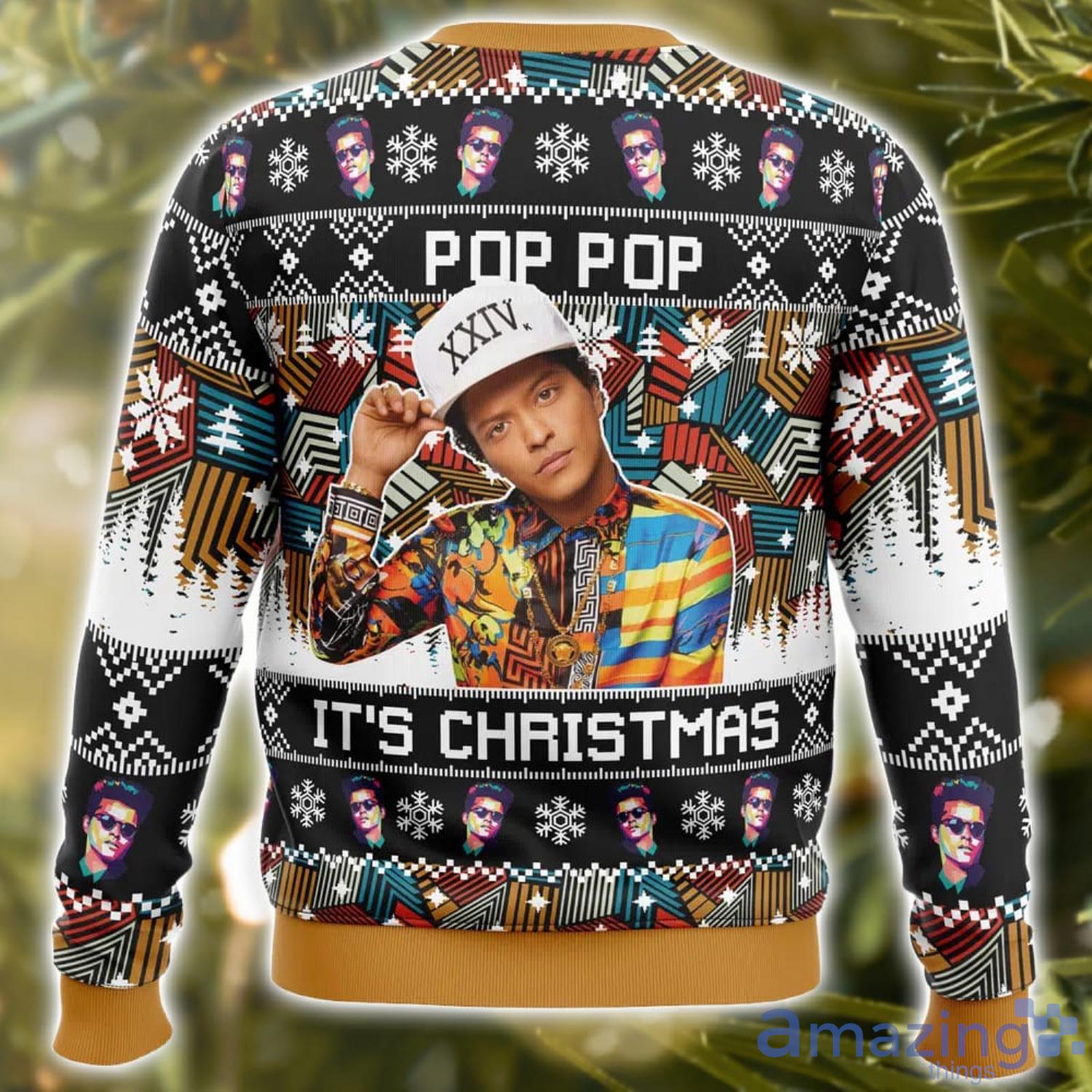Whether you’re a die-hard Bruno Mars fan or simply want to spread some holiday cheer, this Pop Pop It’s Christmas Bruno Mars AOP Ugly Christmas Sweater is a must-have addition to your wardrobe. It’s the perfect conversation starter and will surely make you the life of any holiday gathering.