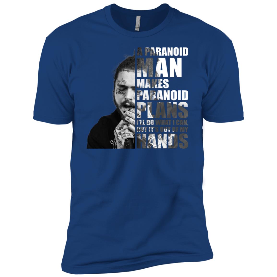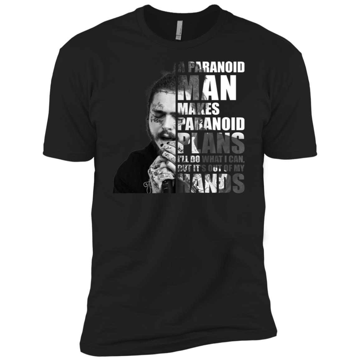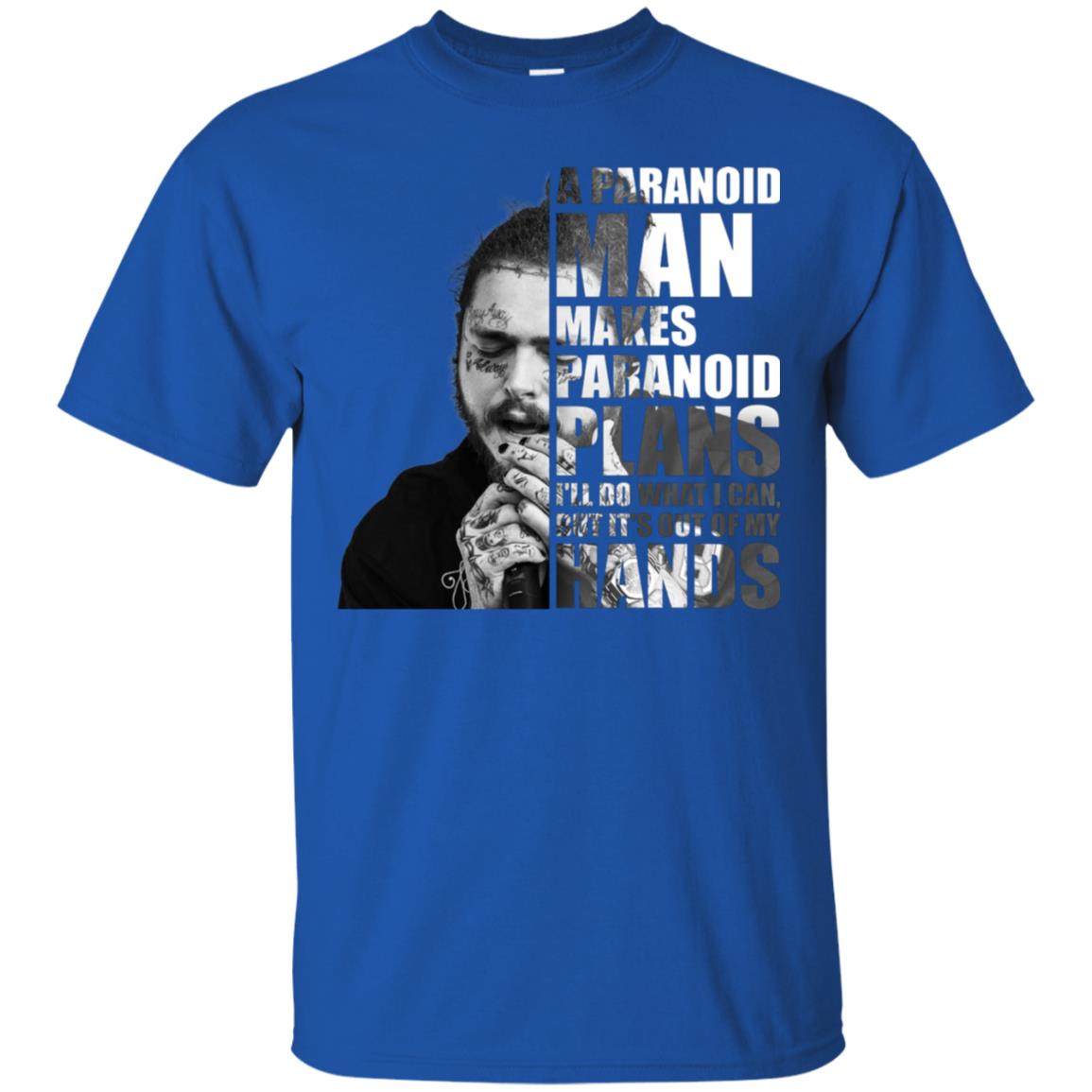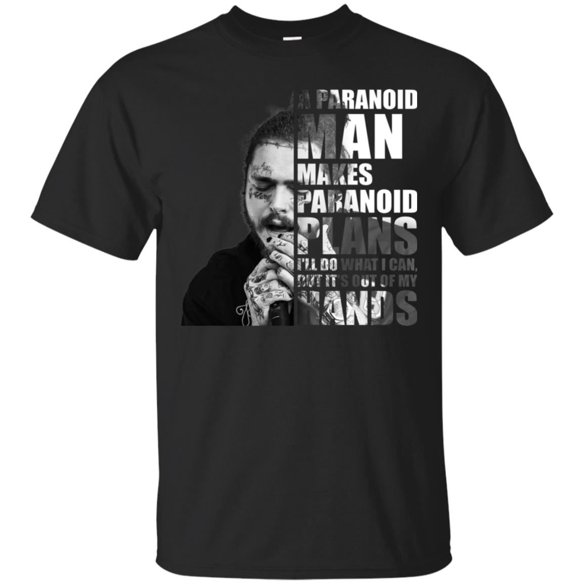 Find the “Post Malone-A paranoid man makes paranoid plans Shirt” and select your preferred style and size today to add this iconic design to your collection.