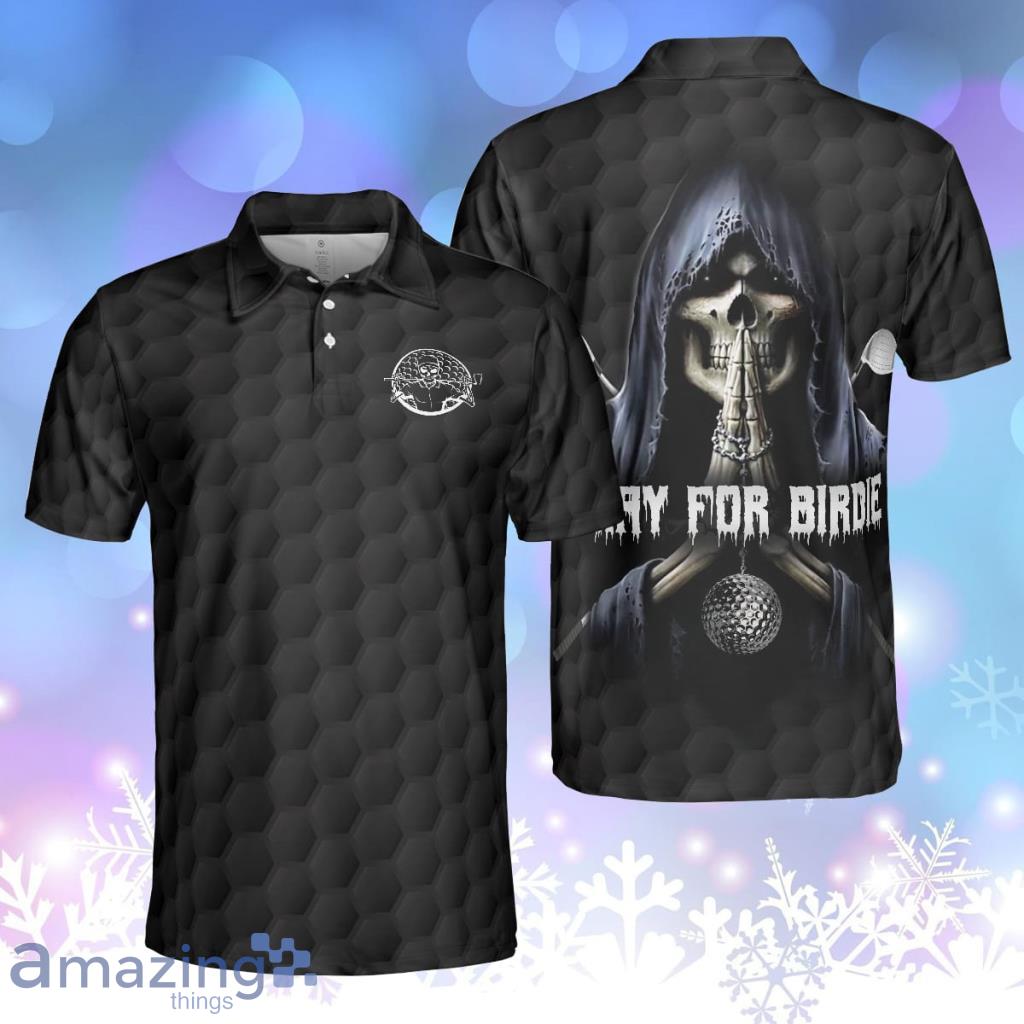 Pray For Birdie Golfing Skeleton Black Golf Pattern Skull Personalized Polo Shirt Information: