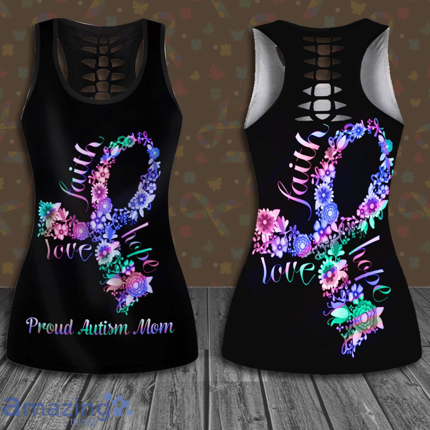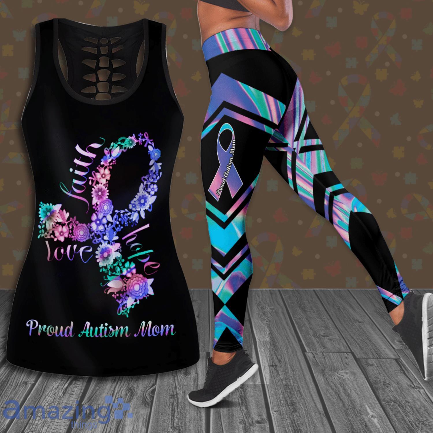 Some of the Proud Autism Mom Flower Ribbon All Over Print 3D Combo Hollow Tank Top And Leggings For Women photos