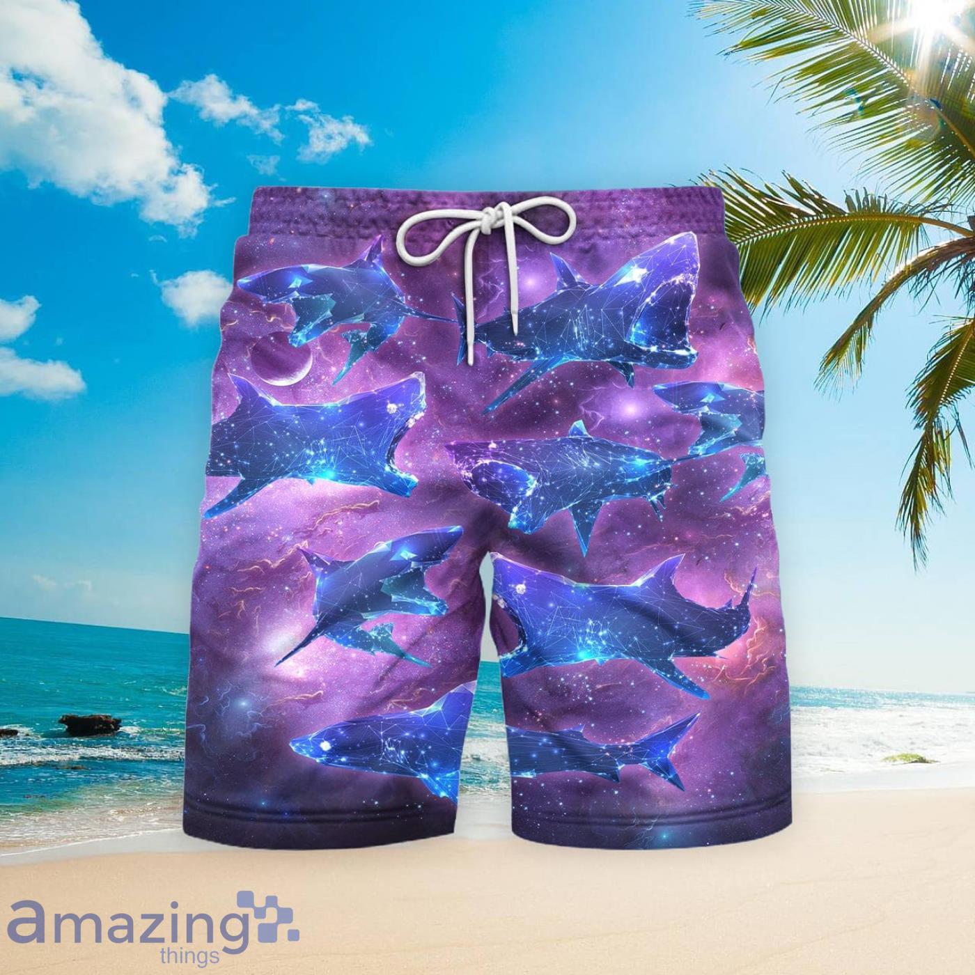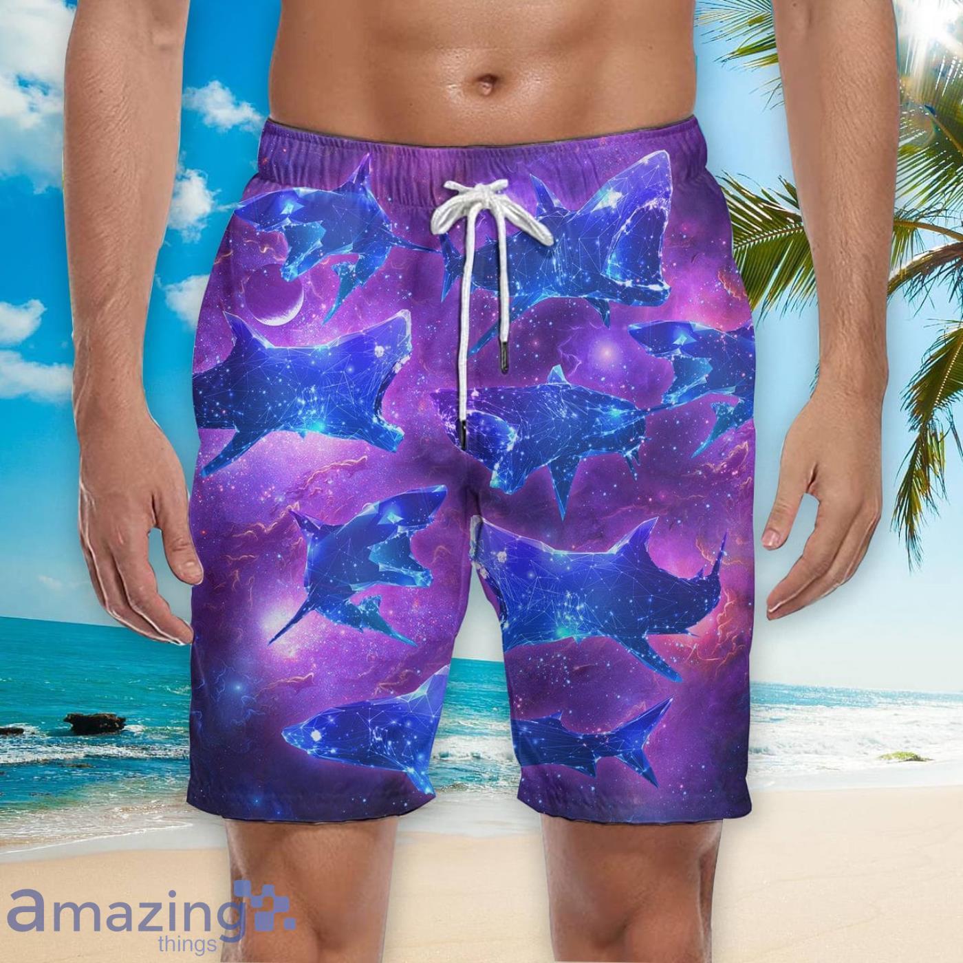 Crafted from high-quality materials, these beach shorts offer the perfect blend of durability and breathability, ensuring long-lasting wear and maximum comfort in the summer heat. The electric purple hue adds a bold touch to your summer wardrobe, while the mesmerizing neon shark design glows in the dark, creating a captivating visual effect that will make you stand out from the crowd.
