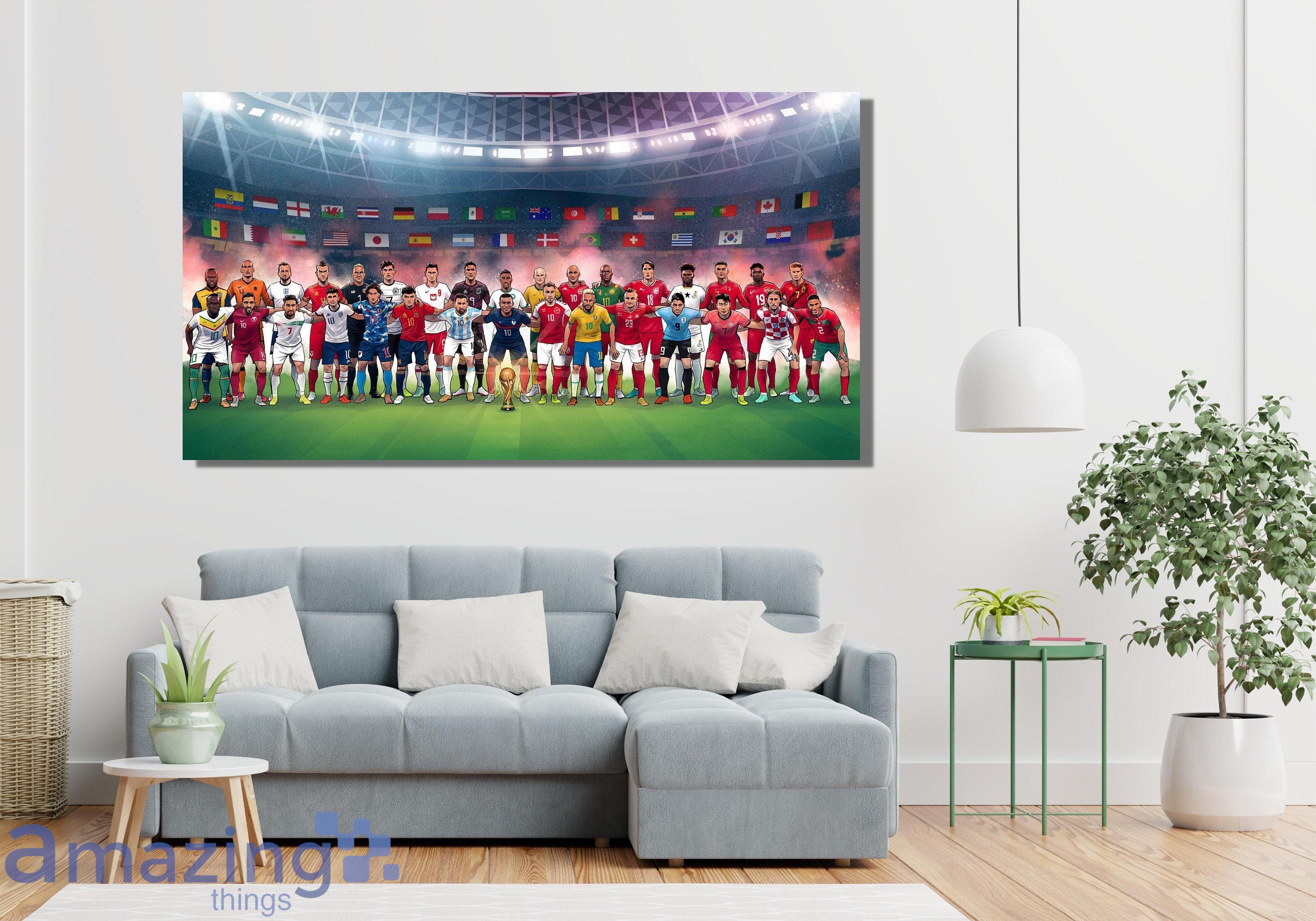 Qatar World Cup 2022 Neymar Ronaldo Messi Benzema Lewandowski Suarez Modric Kevin De Bruyne Canvas Or Poster Details: