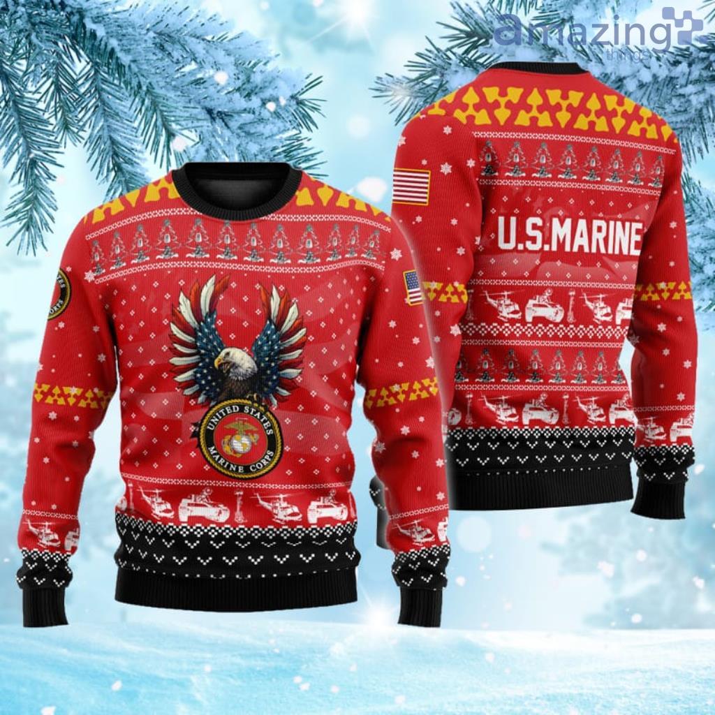 Red US Marine Corps Christmas Tree Christmas Ugly Sweater 3D