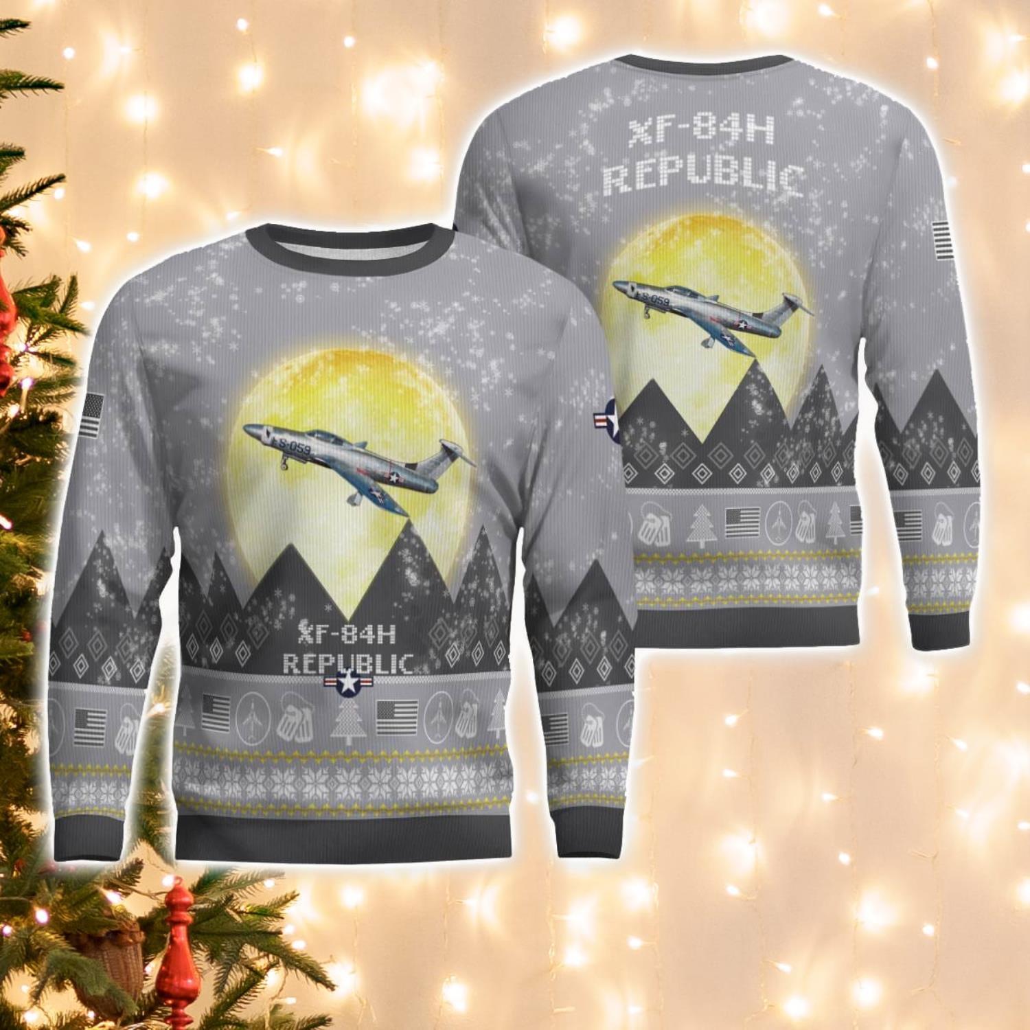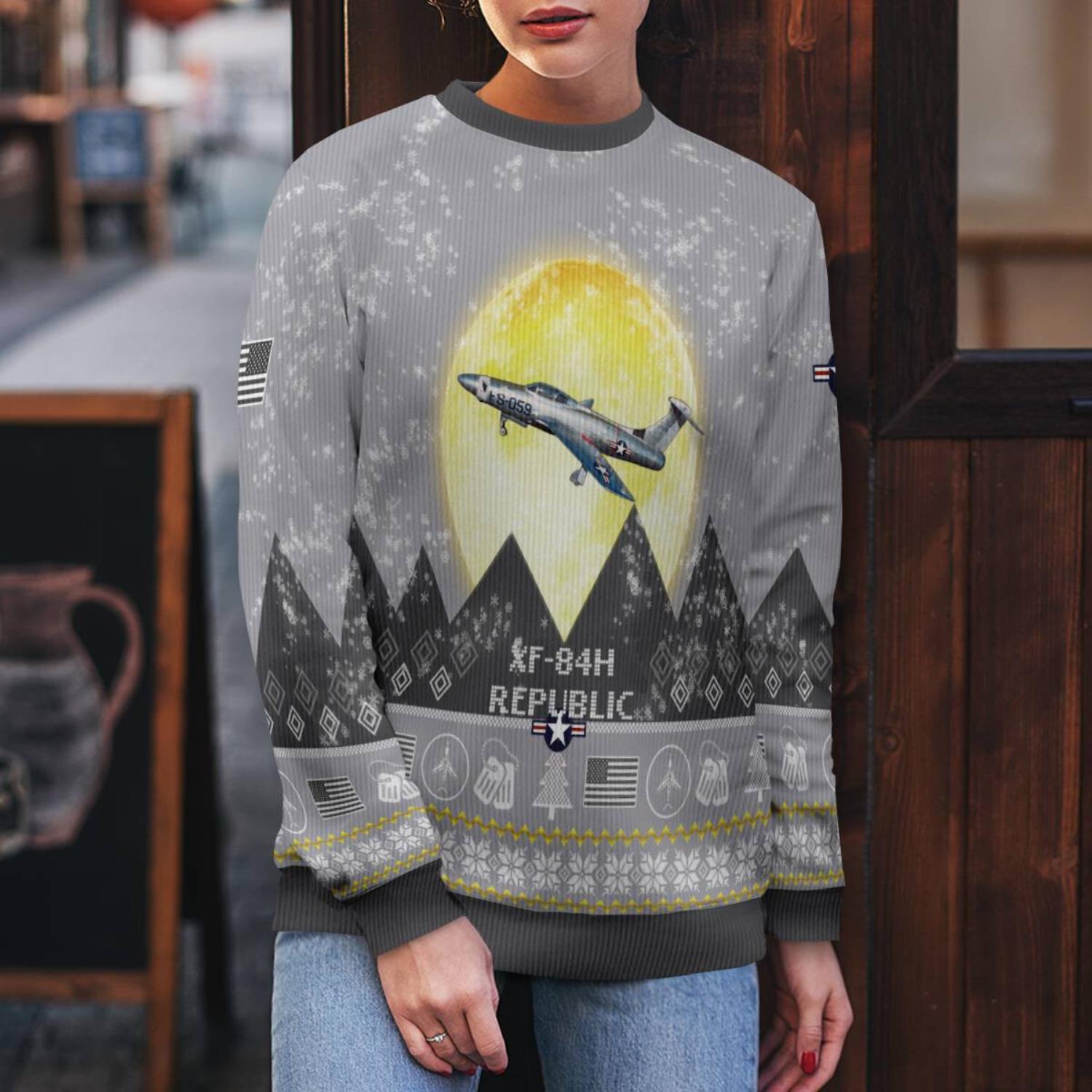 Republic XF-84H XF84H Aircraft Moonlight And Mountain Pattern Ugly Christmas Sweater Aircraft Lovers Christmas Gift Information