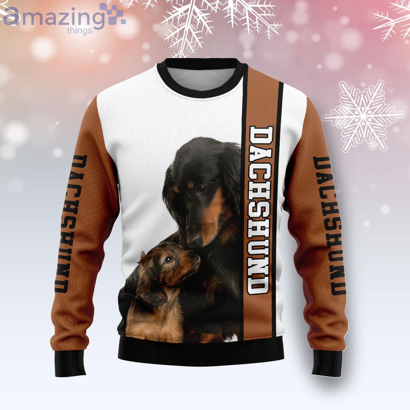 Do you love your dachshund but feel like they always steal the spotlight at holiday gatherings? Introducing the 3D Sweater, a trendy and cuddly addition to your festive wardrobe. This ugly Christmas sweater is made from recycled materials and features a stylish graphic of a rescued dachshund dog. Whether you’re cheering on your pup at the next dog race or simply want to show your solidarity with other dachshund lovers, this ugly Christmas sweater is sure to put a smile on everyone’s face. So grab one today, and show that you’re not afraid to stand out from the crowd!