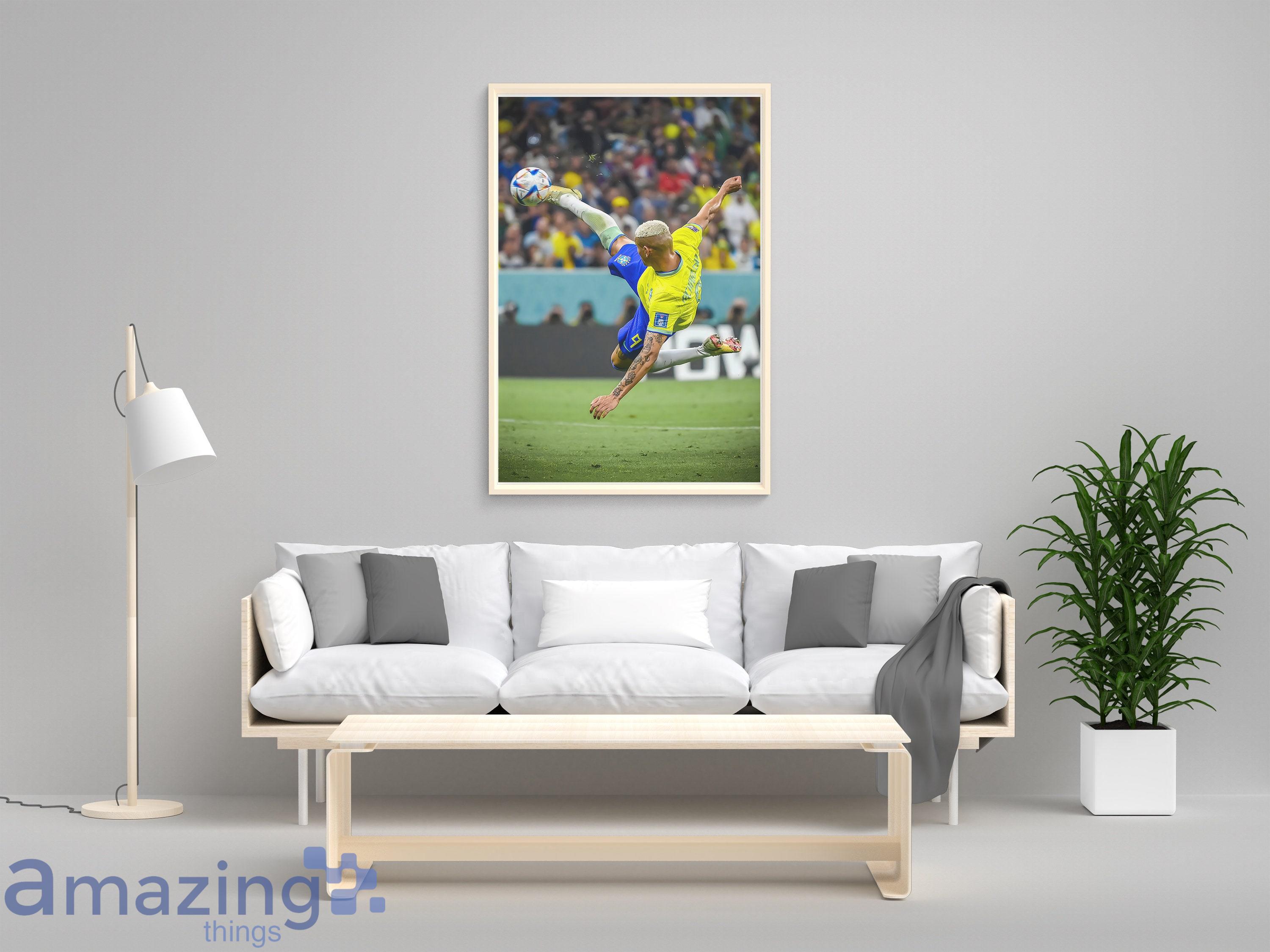 Looking for a way to show your support for the Brazilian national football team as they head into the 2022 FIFA World Cup? Look no further than this Richarlison World Cup 2022 Vertical Poster or Canvas! Featuring star forward Richarlison in action, this piece is sure to get you pumped up for the tournament. It’s available in both poster and canvas form, so you can choose the option that best suits your needs. Hang it up in your bedroom, office, or anywhere else you want to show your support for the Brazilian national team!