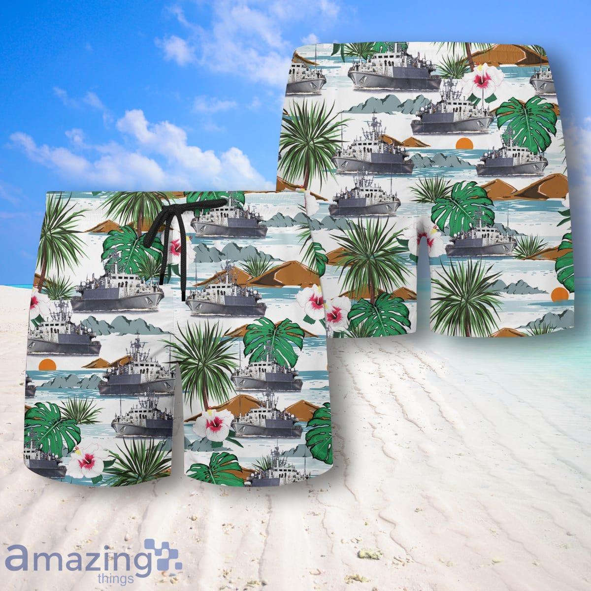 Are you ready to make a fashion statement this summer? Look no further than our RN Sandown-Class minehunter Hawaiian Shirt and Shorts – the best style for men!