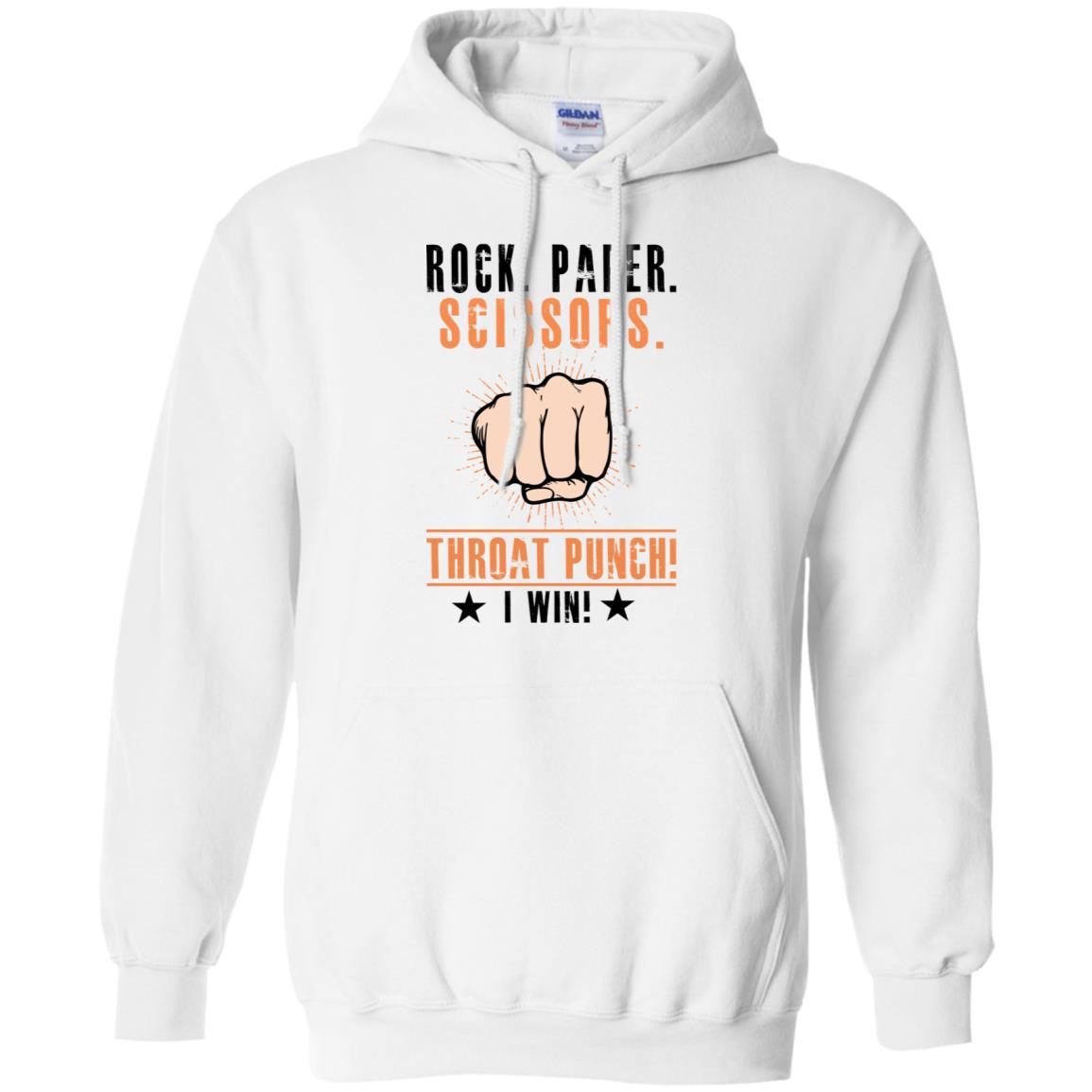 Discover the Humorous Edge: The Rock Paper Scissors Throat Punch I Win Shirt