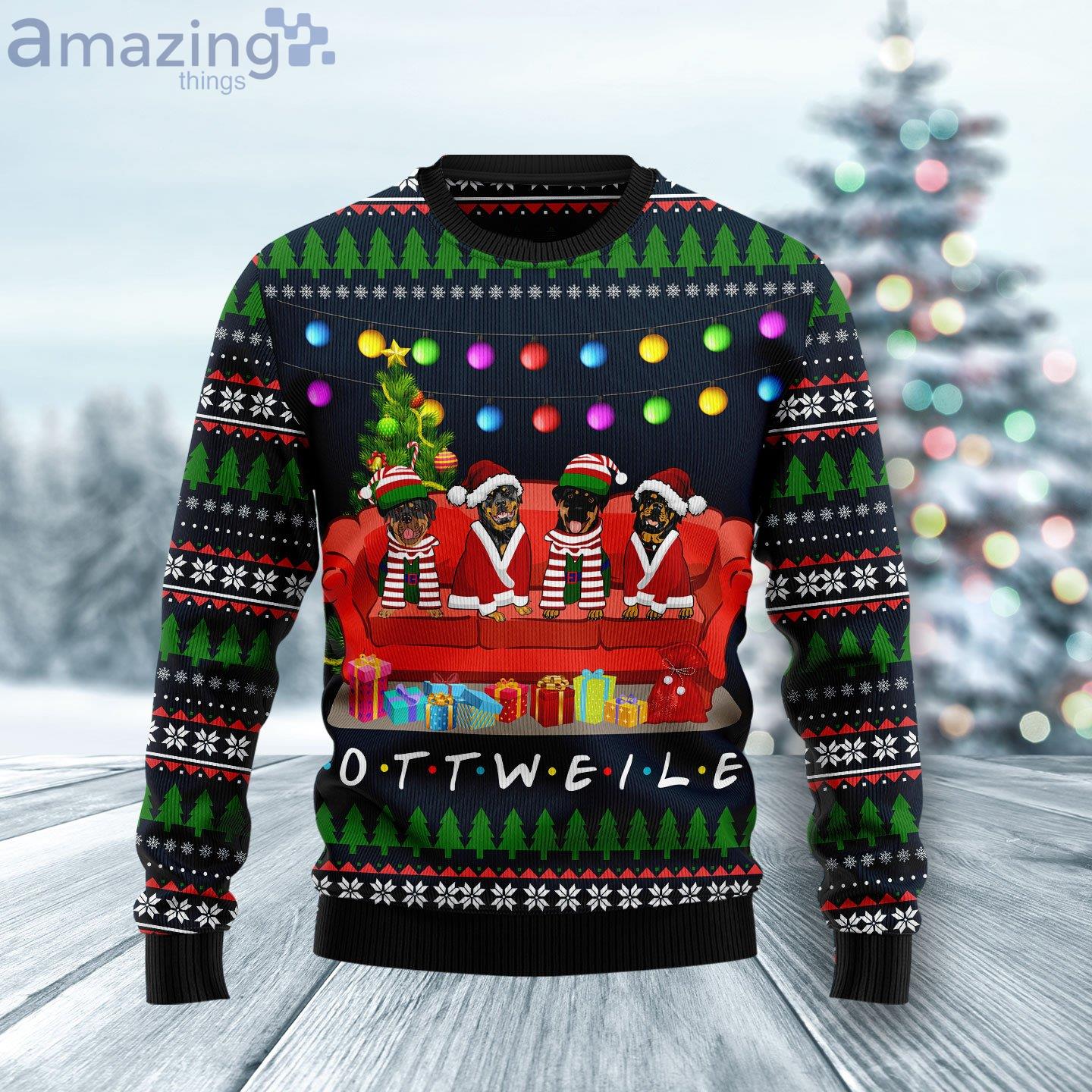 Looking for the perfect ugly Christmas sweater? Look no further than Rottweiler Friends on Red Sofa! This festive ensemble is a must-have for any fan of the canine species, and is sure to bring a smile to everyone’s face this holiday season.