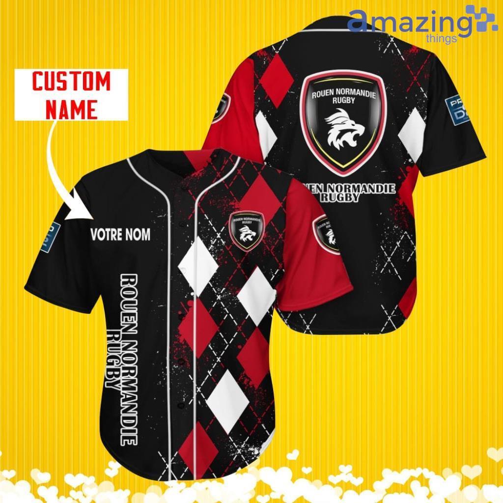 Rouen Normandie Rugby Sports Logo Jersey Baseball Shirt Custom Name With Diamond Brush Pattern For Men And Women Information: