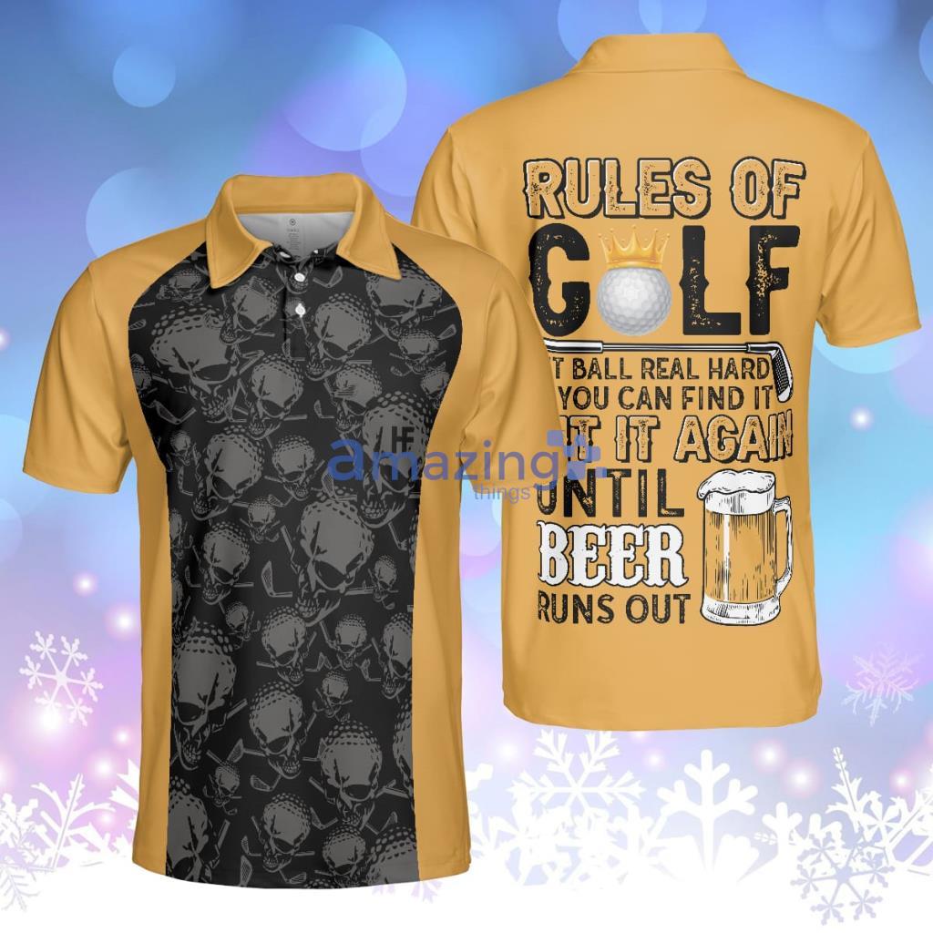 Rules Of Golf Polo Shirt Black And Orange Golfing Shirt With Sayings Cool Golf Gift For Beer Lovers Product Photo 1