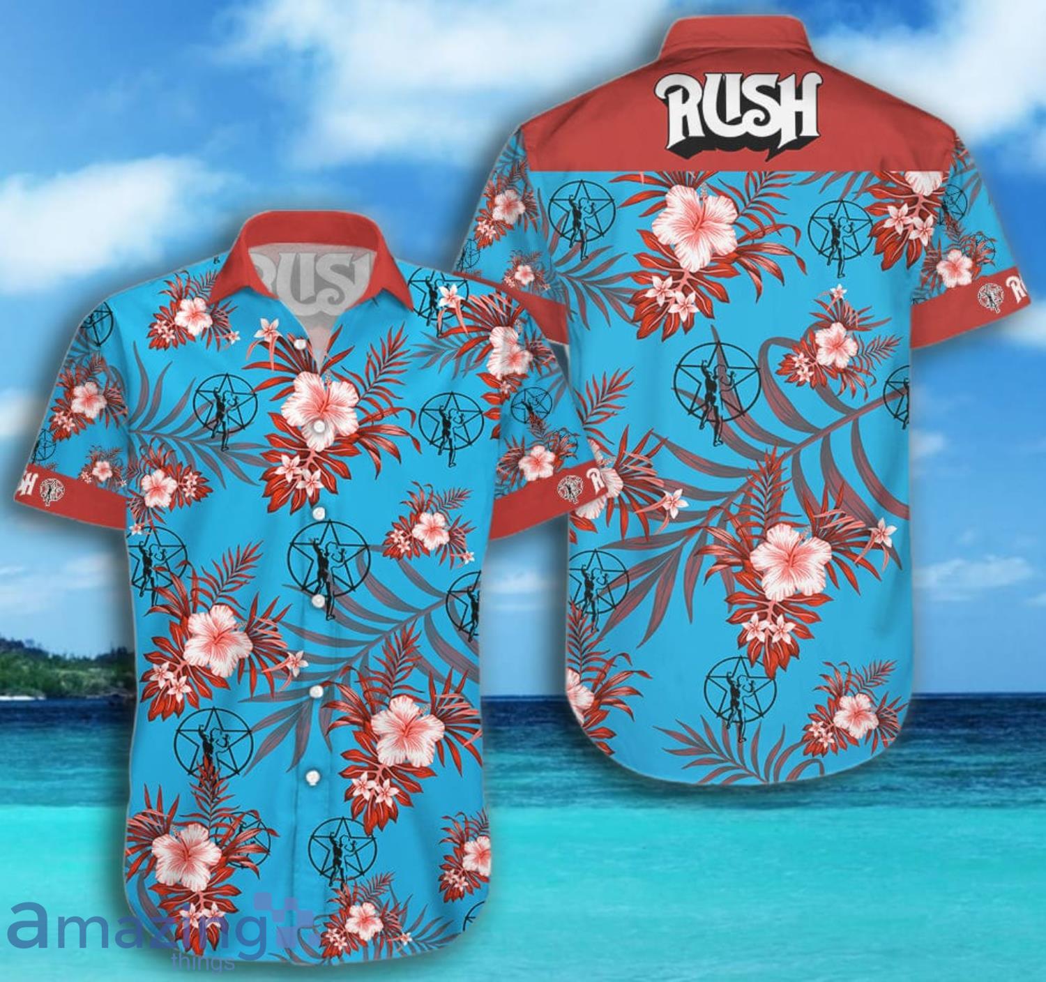 Rush Rock Music Band Tropical Blue Short Sleeve Hawaiian Shirt And Short