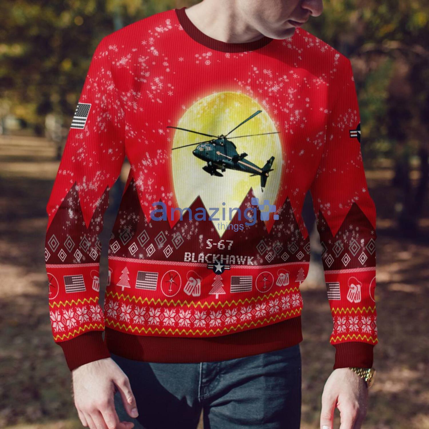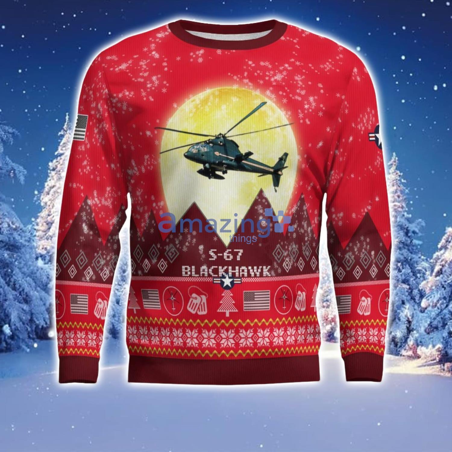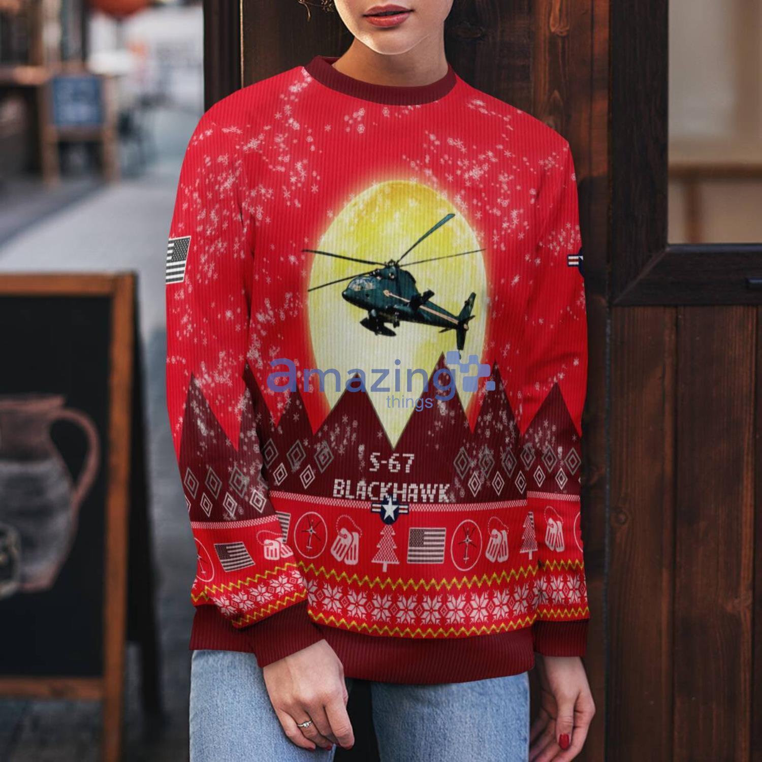 S-67 Blackhawk S67 Aircraft Moonlight Red Color Ugly Christmas Sweater Christmas Gift Information