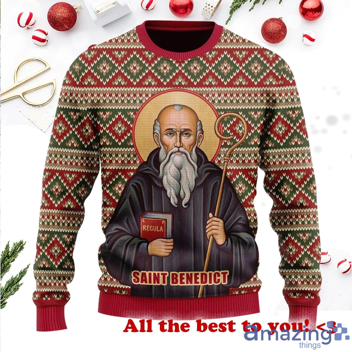 Introducing the Saint Benedict Wool Knitting Pattern Christmas Ugly Sweater! This festive garment is perfect for anyone who loves a bit of extravagance in their wardrobe. Made from a luxurious wool blend, this ugly sweater is sure to keep you warm all winter long. With a classic fit and unique design, this sweater is a must-have for any fashionable individual. So don’t wait any longer, order your Saint Benedict Wool Knitting Pattern Christmas Ugly Sweater today!