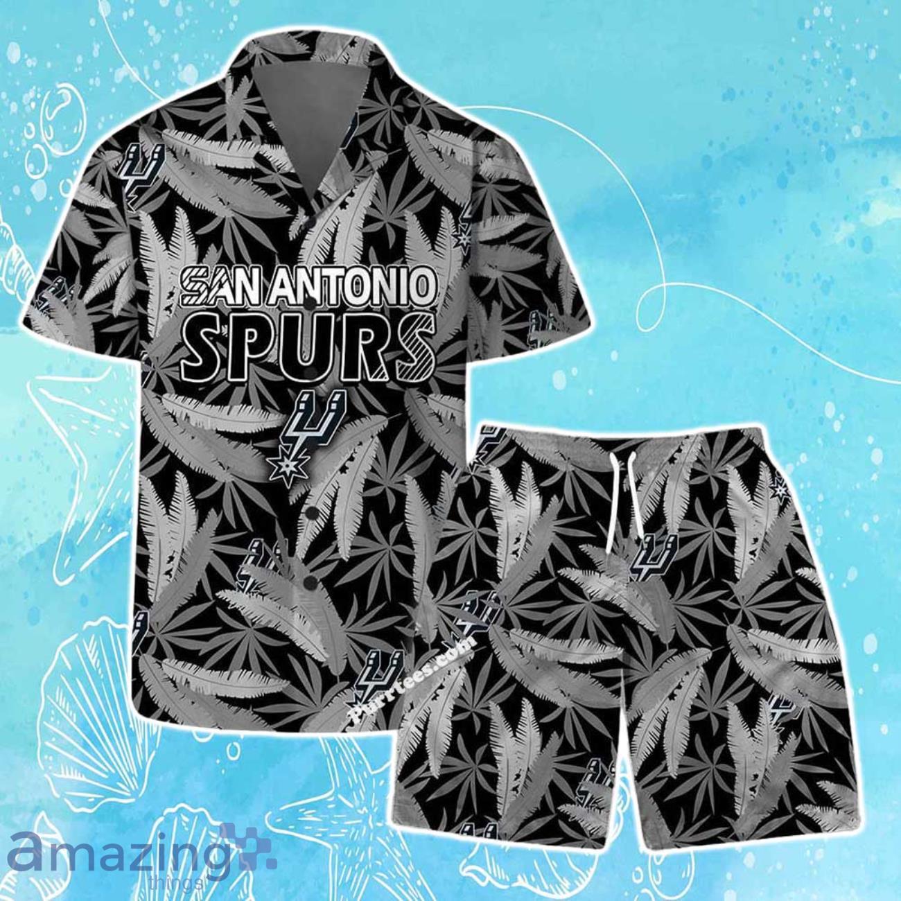 San Antonio Spurs Team Logo Pattern Leaves Vintage Art Hawaiian Shirt & Short Details:
