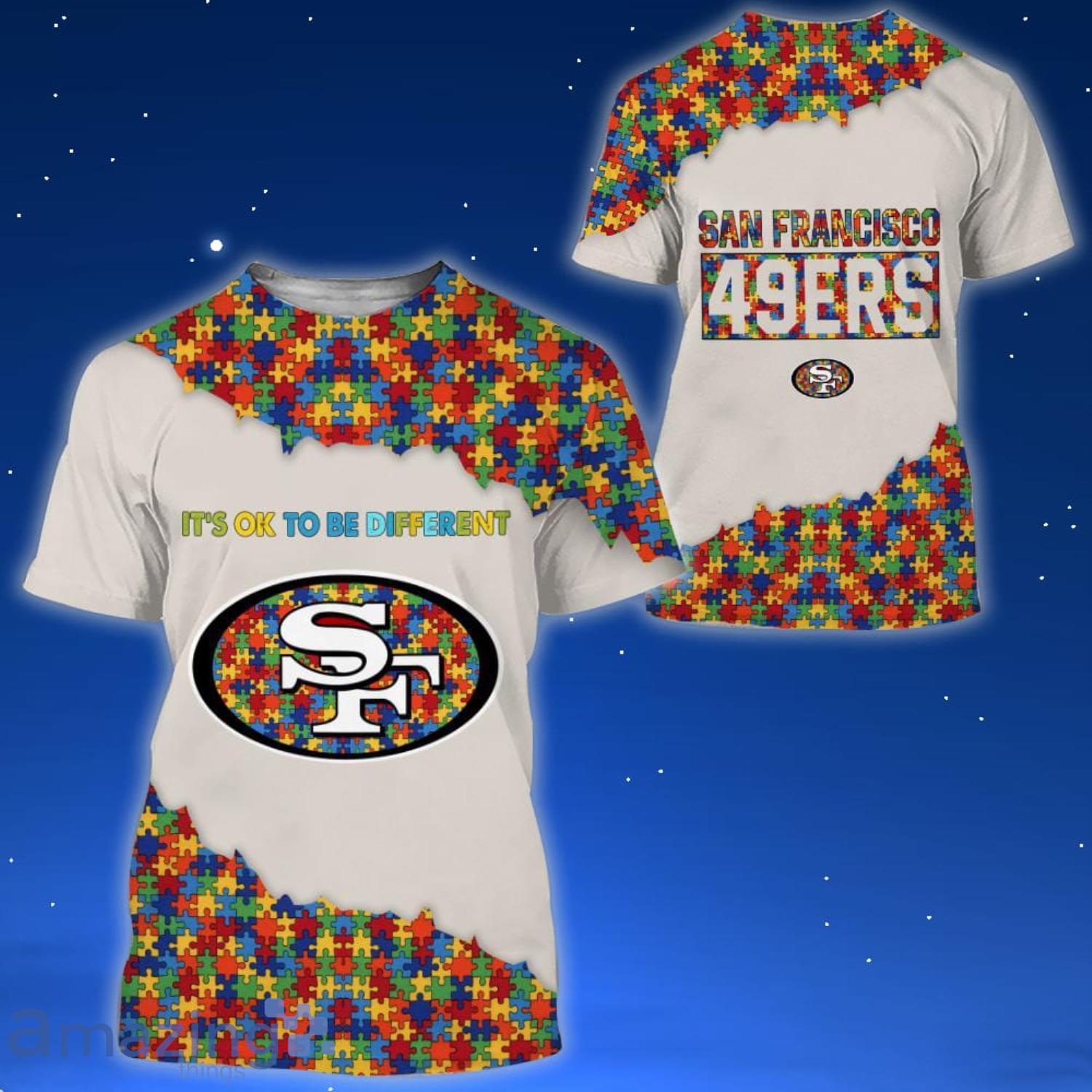Perfect design for holiday. Get yours this shirt or this is a cute item for your daddy, gift for your mom, and gift for friends on any occasion. buy a cute San Francisco 49ers NFL Autism All Over Printed 3D Shirt For Fans now.