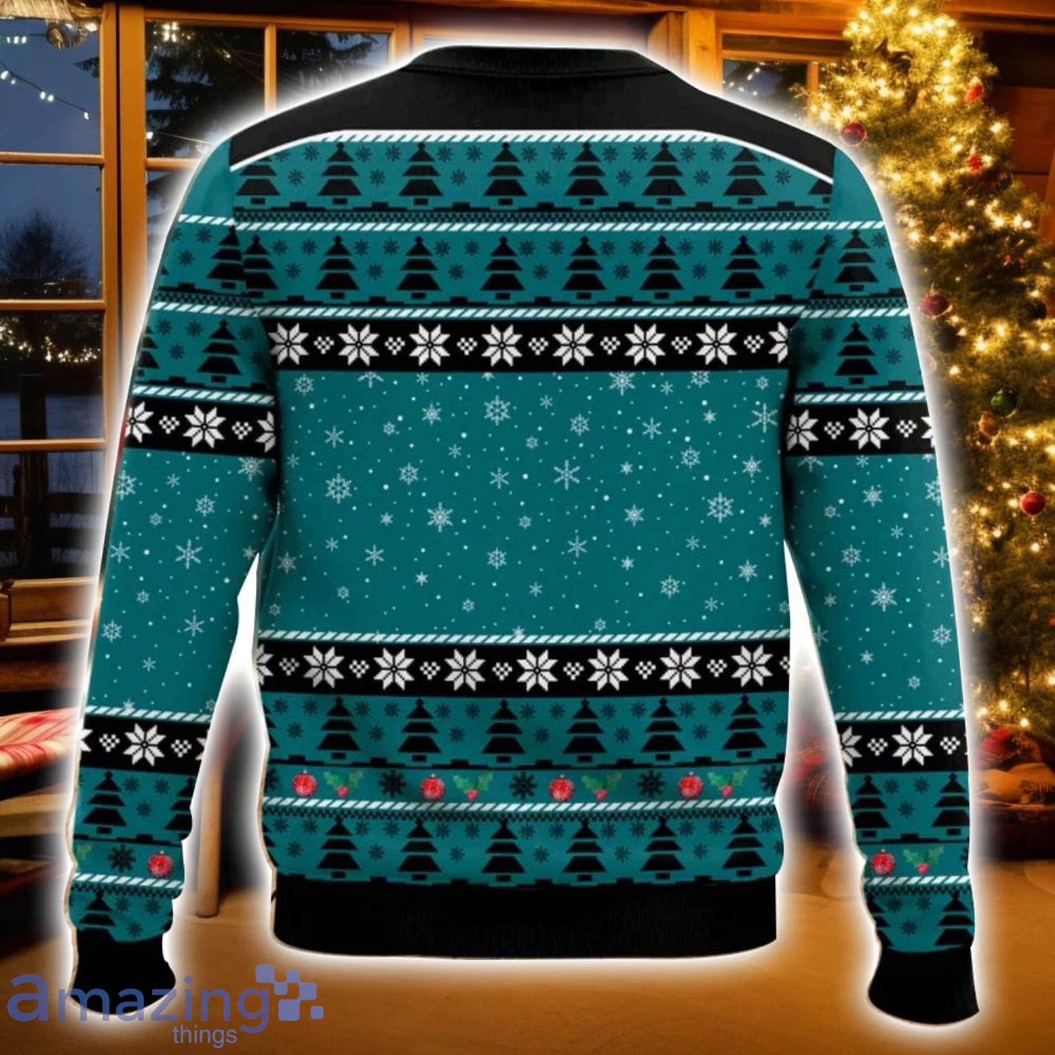 Designed with a delightful Grinch-inspired twist, this sweater combines the holiday cheer with your unwavering support for the Sharks. The iconic team logo is prominently displayed on the front, while the Grinch himself can be seen playfully wreaking havoc in the background. It’s a truly one-of-a-kind design that is sure to turn heads at any holiday gathering!