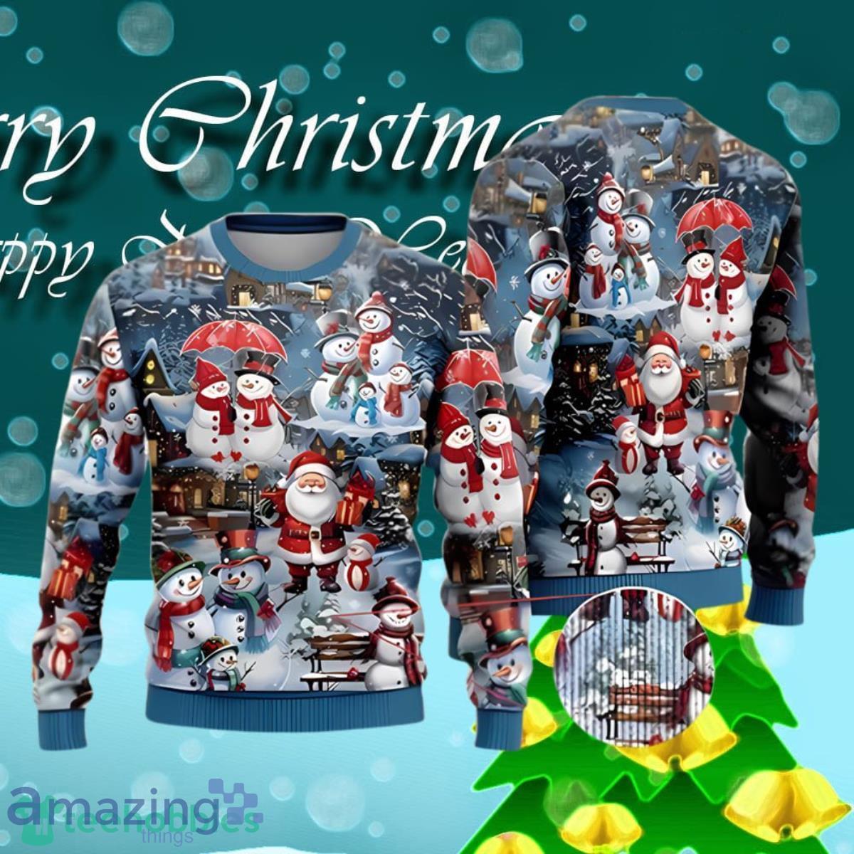 Santa Claus And Snowman On A Winter Ugly Christmas Sweater Best Gift