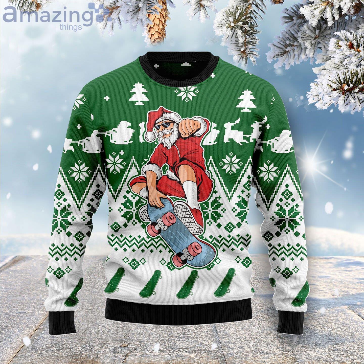 Some of the Santa Claus Skateboarding Green Ugly Christmas Sweater photos