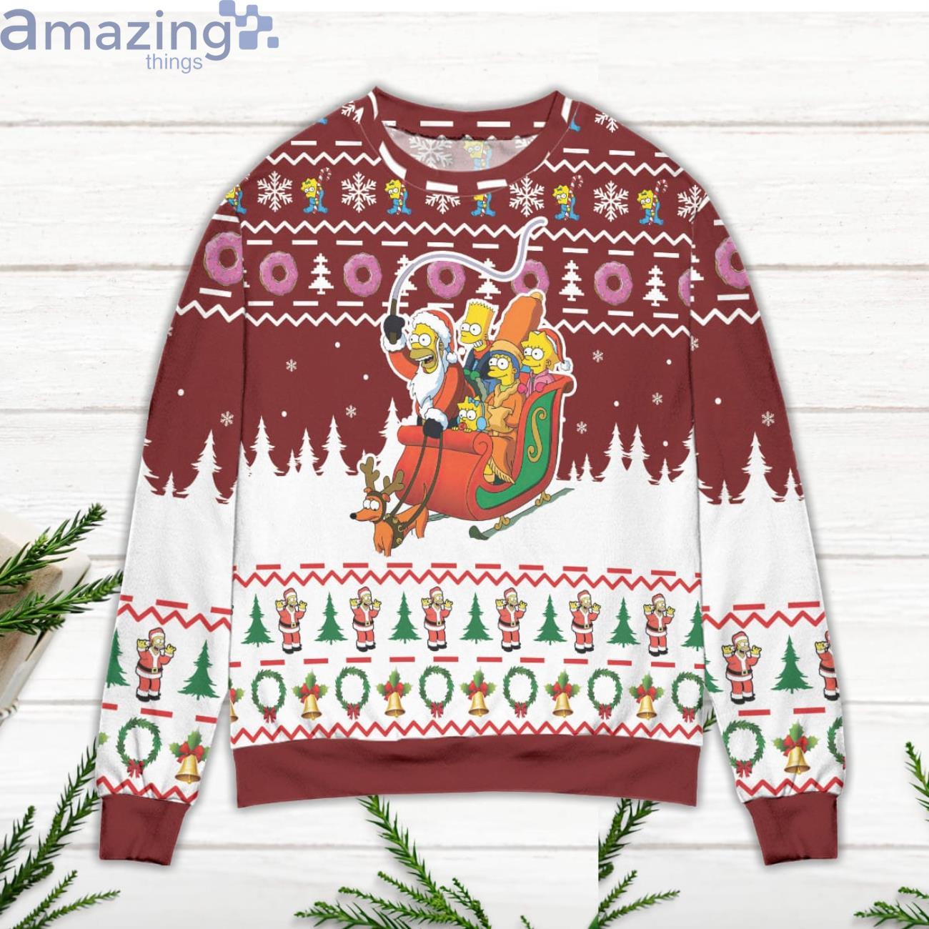 Some of the Santa Claus The Simpsons Version Snowflake & Pine Tree Pattern Ugly Christmas Sweater photos