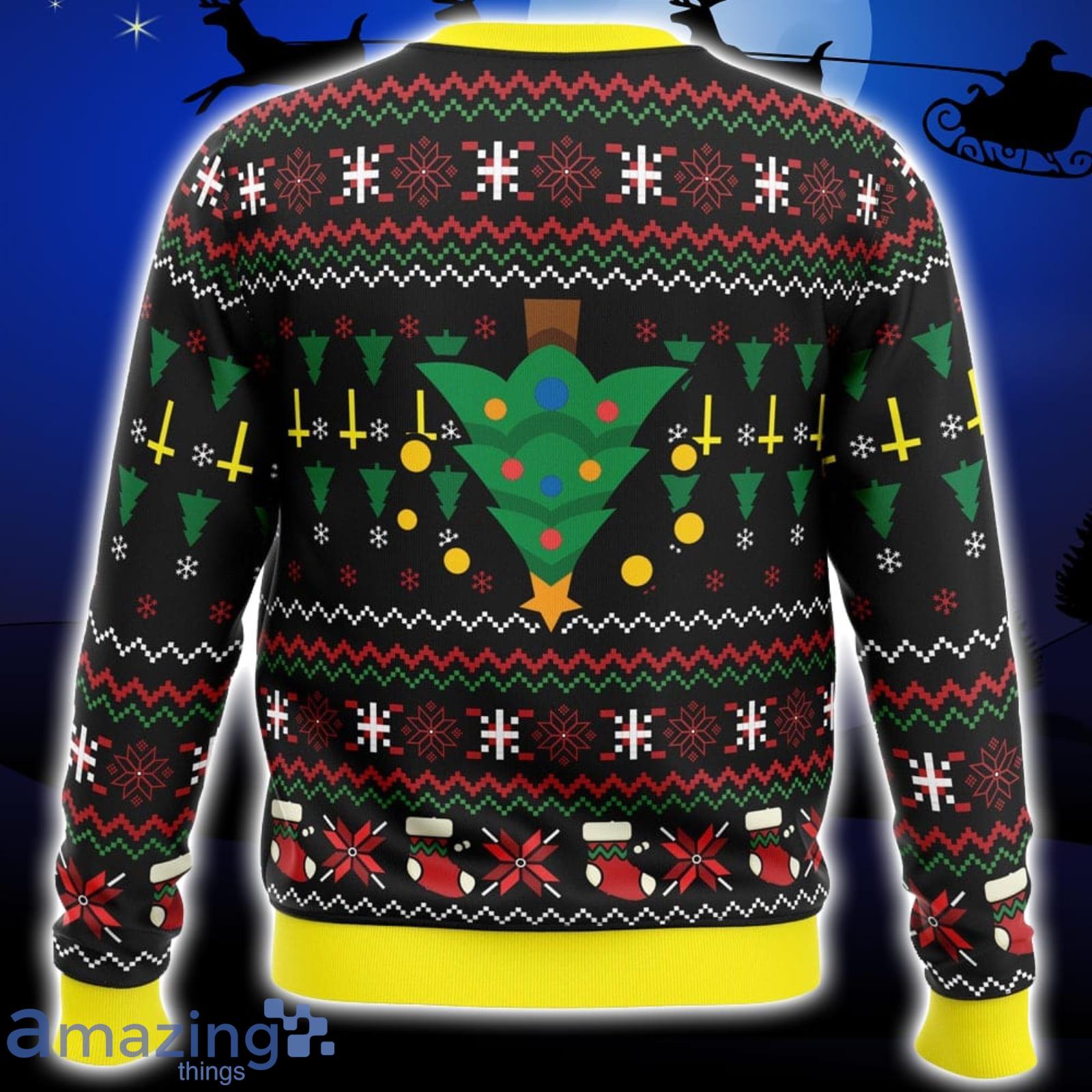 Not only will you look effortlessly cool in this sweater, but you’ll also be the center of attention wherever you go. Whether you’re attending an office holiday party, a family gathering, or a festive night out with friends, our Santa Emeritus Papa Emeritus Xmas Ugly Christmas Sweater is bound to get you noticed and spark conversations.