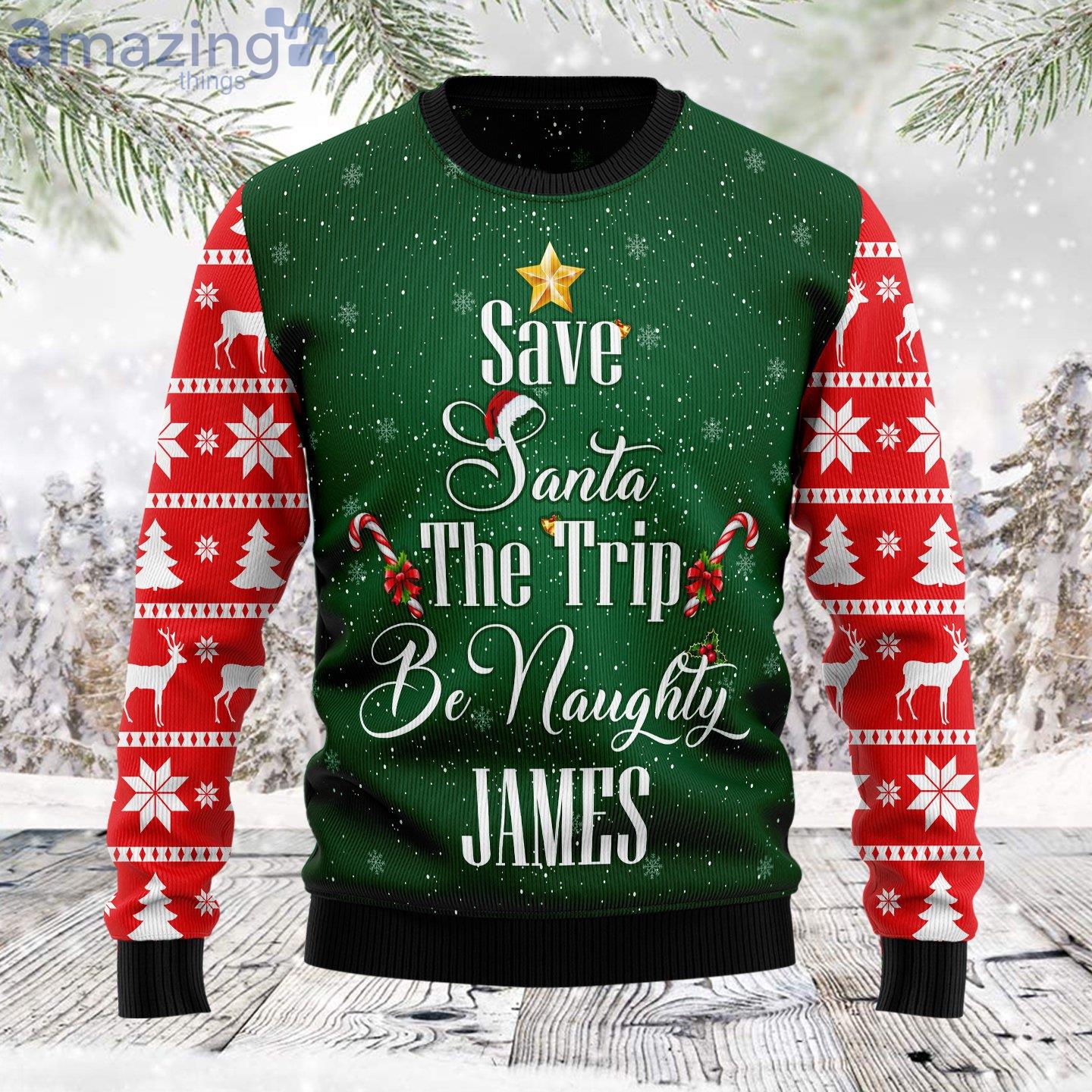 Save Santa The Trip Be Naughty Custom Name Ugly Christmas Holiday Sweater Informations: